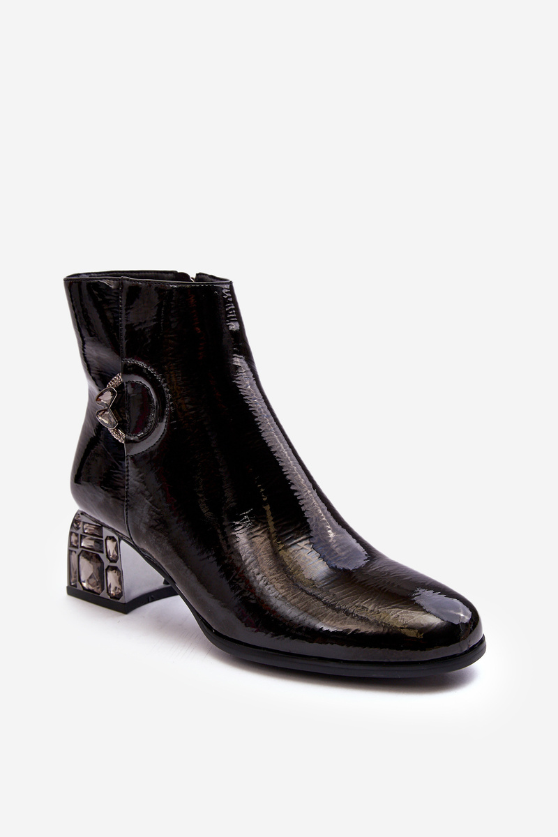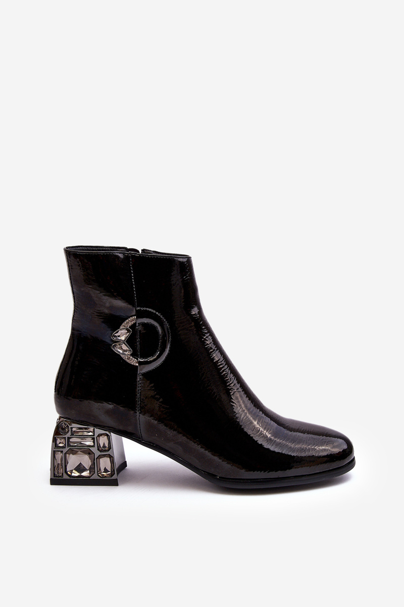 Lakierowane Damskie Botki Na Zdobionym Obcasie D&A MR870-93 Czarne