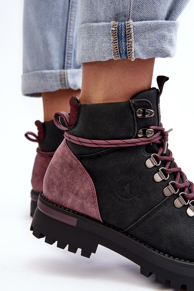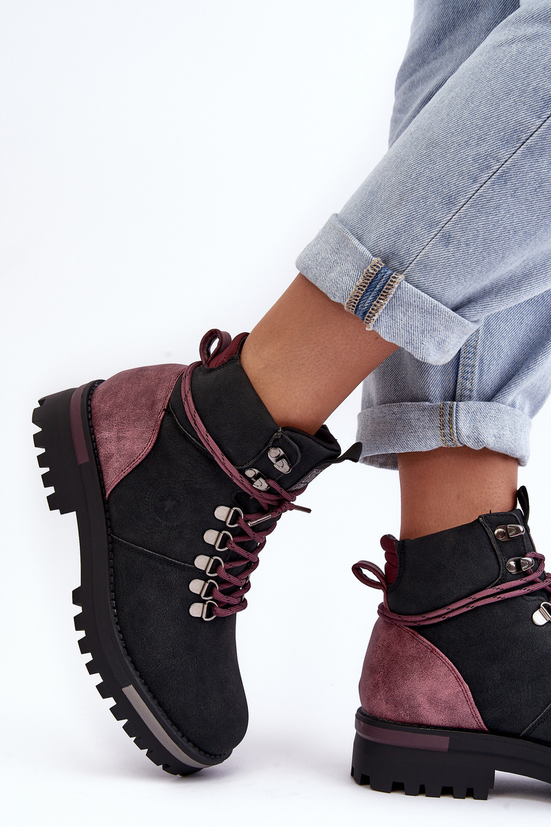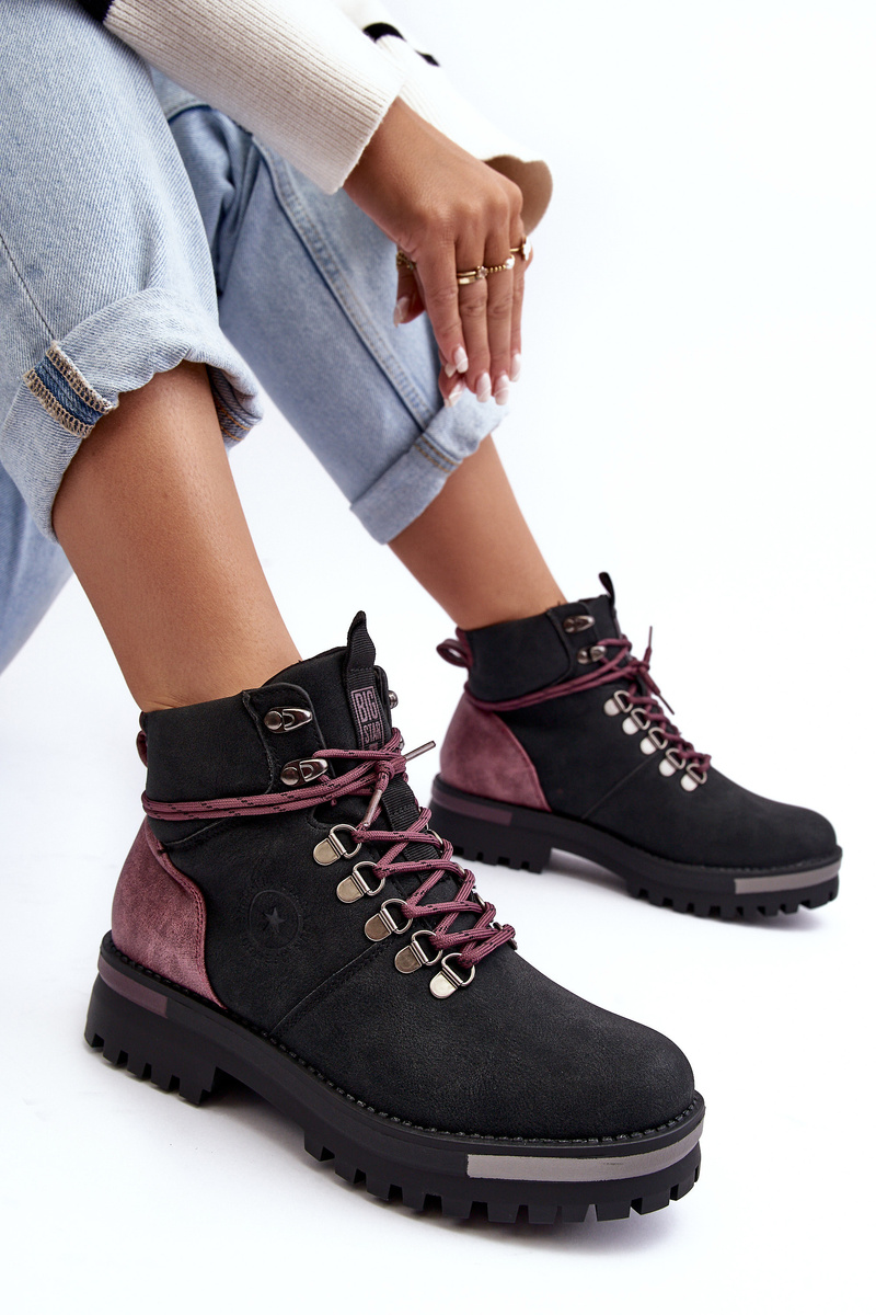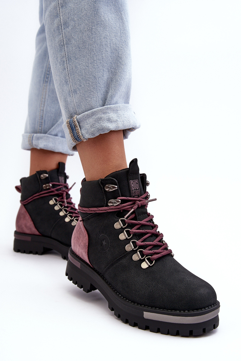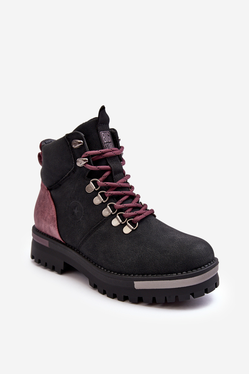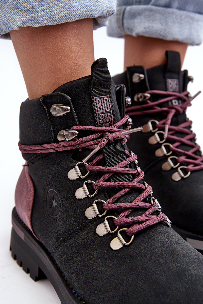 Trapery marki Big Star wykonane z eko skóry. Masywna podeszwa oraz płaski obcas sprawiają, że botki są stabilne podczas użytkowania na nierównej nawierzchni. Model z klasycznym sznurowaniem z przodu. Zapiętek jest usztywniony. Nieocieplane. Koniecznie sprawdź całą kolekcję tej marki! Przy wyborze rozmiaru prosimy sugerować się tabelą rozmiarów.