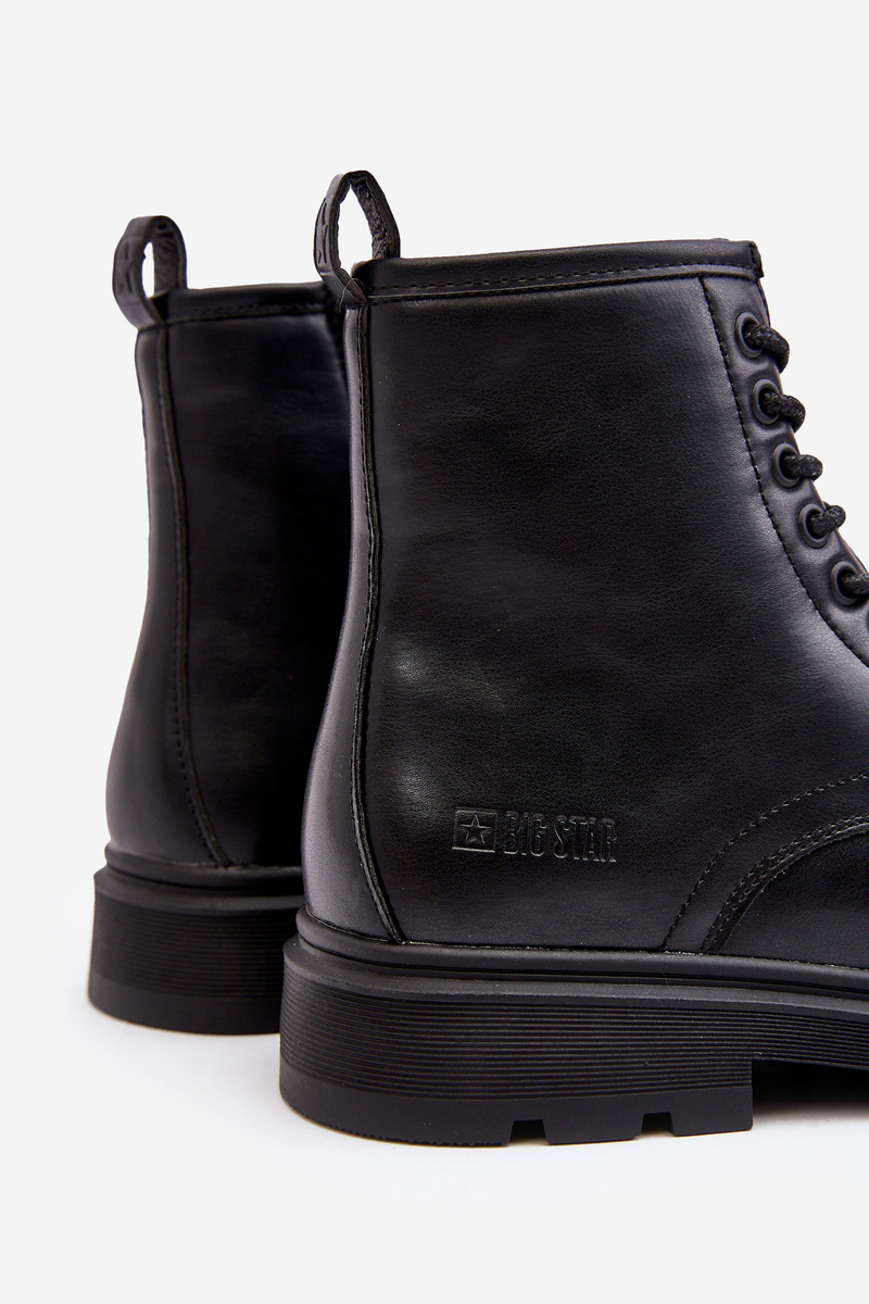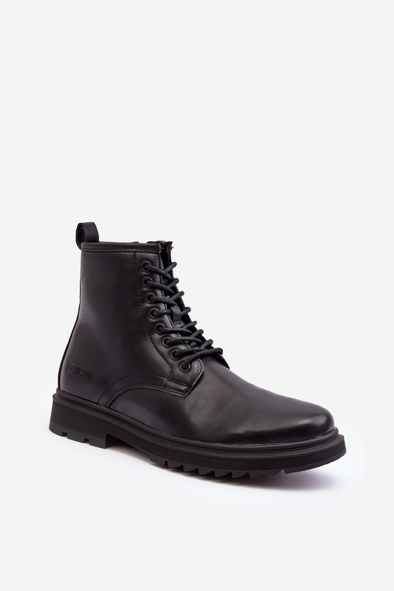 Modne botki męskie od polskiej marki Big Star z cholewką za kostkę. Wykonane z eko skóry. Model ten zapinany jest na suwak z boku oraz dodatkowo posiada sznurowanie. Środek ocieplony kocem obuwniczym. Osadzone na podeszwie z gumowego tworzywa. Noski zaokrąglone. Zapiętek usztywniony. Przy wyborze rozmiaru prosimy sugerować się tabelą rozmiarów.