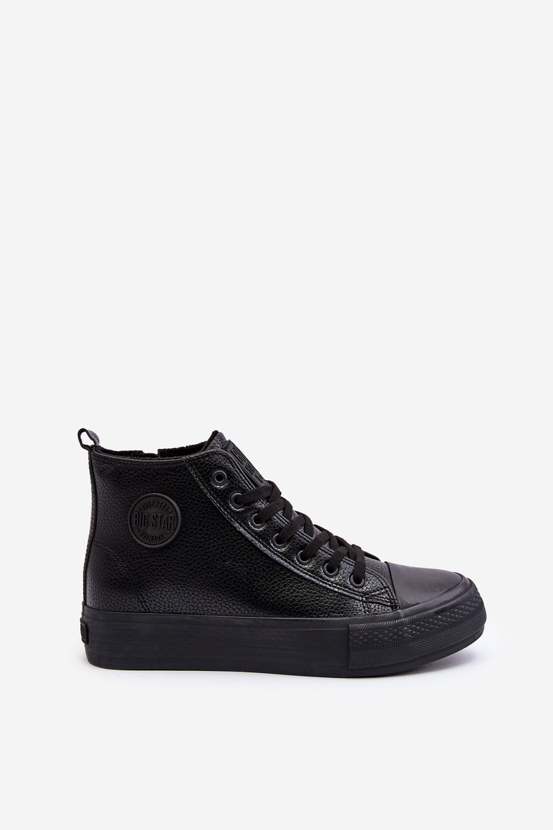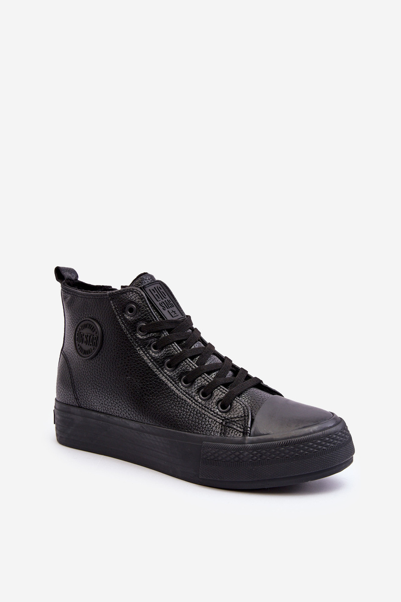 Trampki męskie od marki Big Star wykonane z eko skóry. Osadzone na platformie z gumowego tworzywa. Model ten zapinany jest na suwak z boku oraz posiada sznurowanie. Środek ocieplony kocem obuwniczym. Cholewka za kostkę. Przy wyborze rozmiaru prosimy sugerować się tabelą rozmiarów.