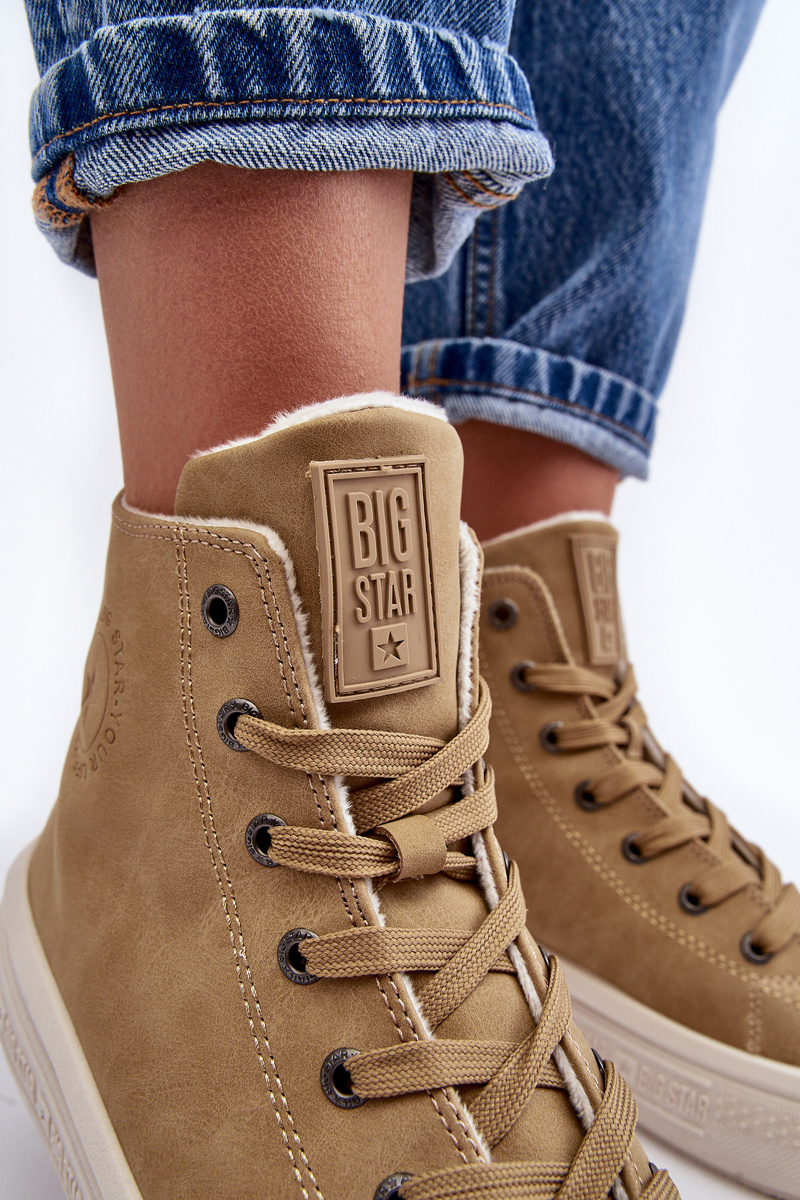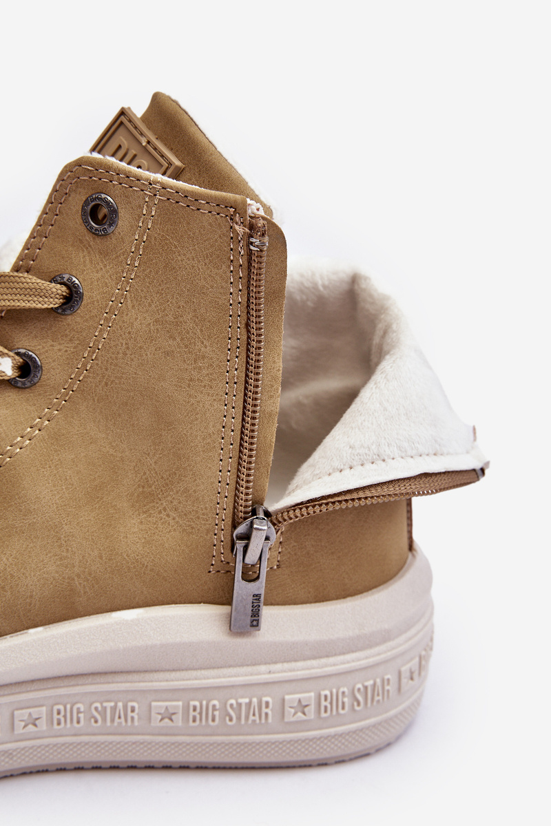 Damskie trampki od marki BIG STAR osadzone na platformie z gumowego tworzywa. Wykonane z eko skóry. Zapinane na suwak oraz dodatkowo posiadają sznurówki. Środek ocieplony futerkiem. Zapiętek jest usztywniony. Cholewka za kostkę. Koniecznie sprawdź całą naszą kolekcję butów marki BIG STAR. Przy wyborze rozmiaru prosimy sugerować się tabelą rozmiarów.