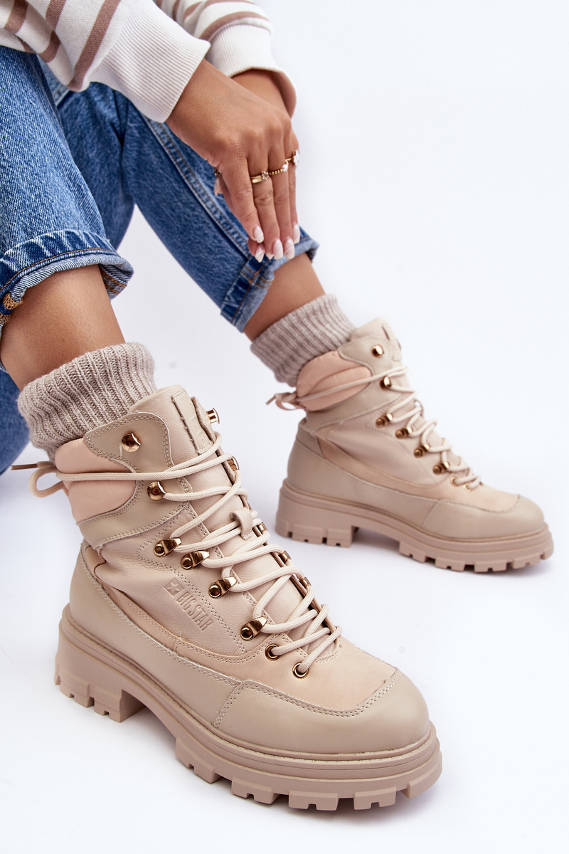 Ocieplane Trapery Botki Sznurowane Damskie Jasnobeżowe Big Star MM274664