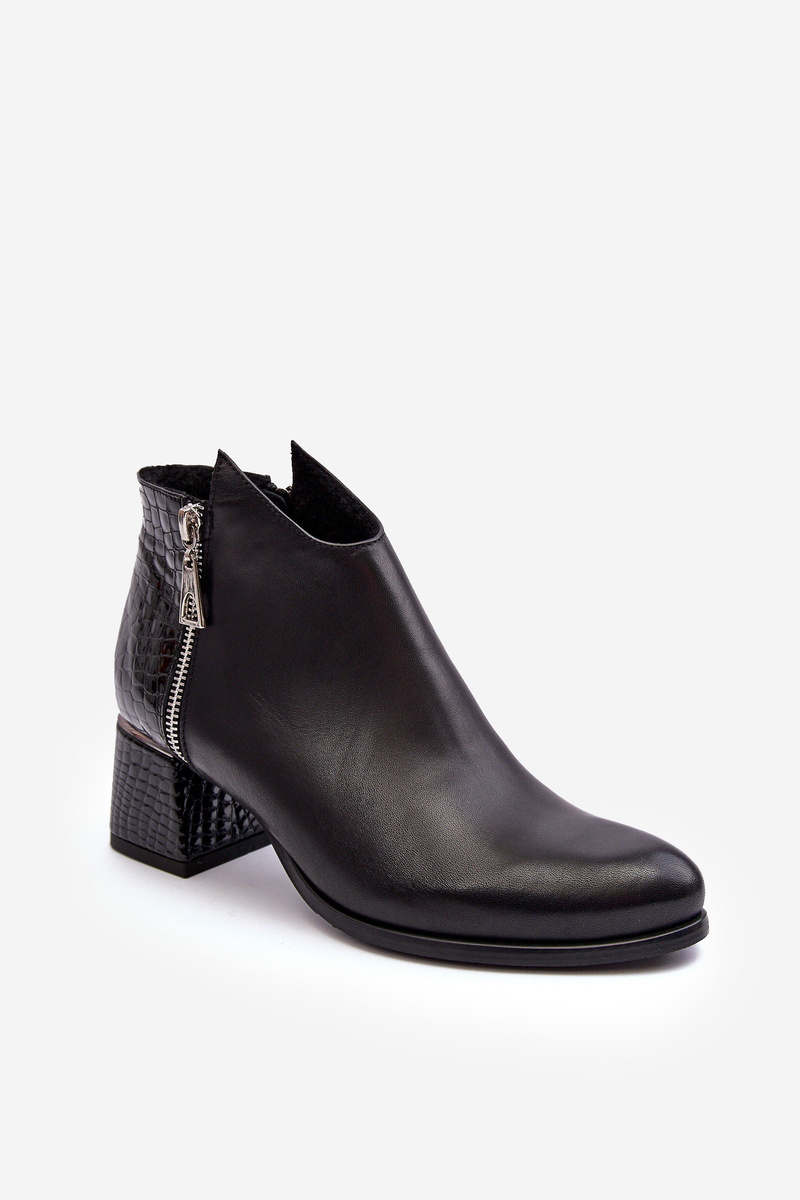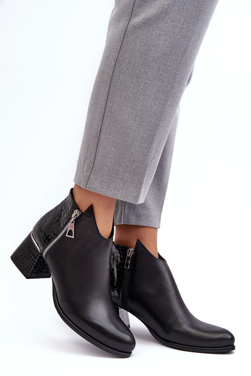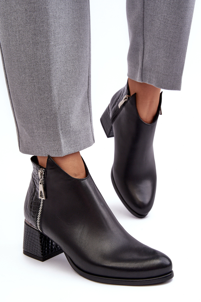 Damskie Skórzane Botki Na Niskim Słupku Zazoo 4111 Czarne