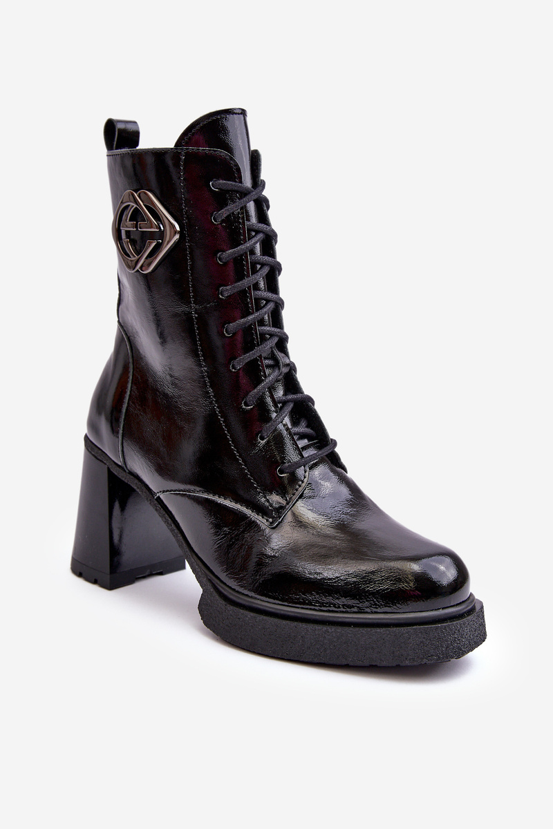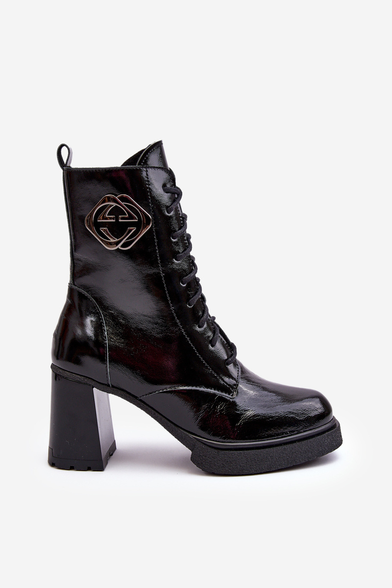 Damskie Skórzane Wysokie Botki Na Słupku Czarne Lemar Danel