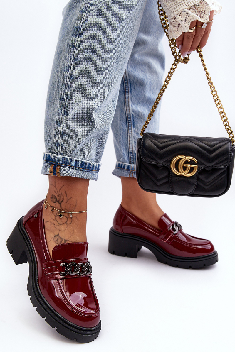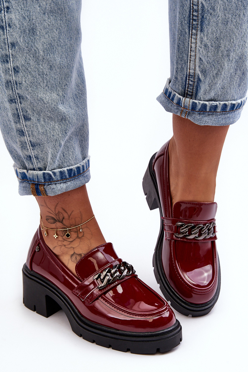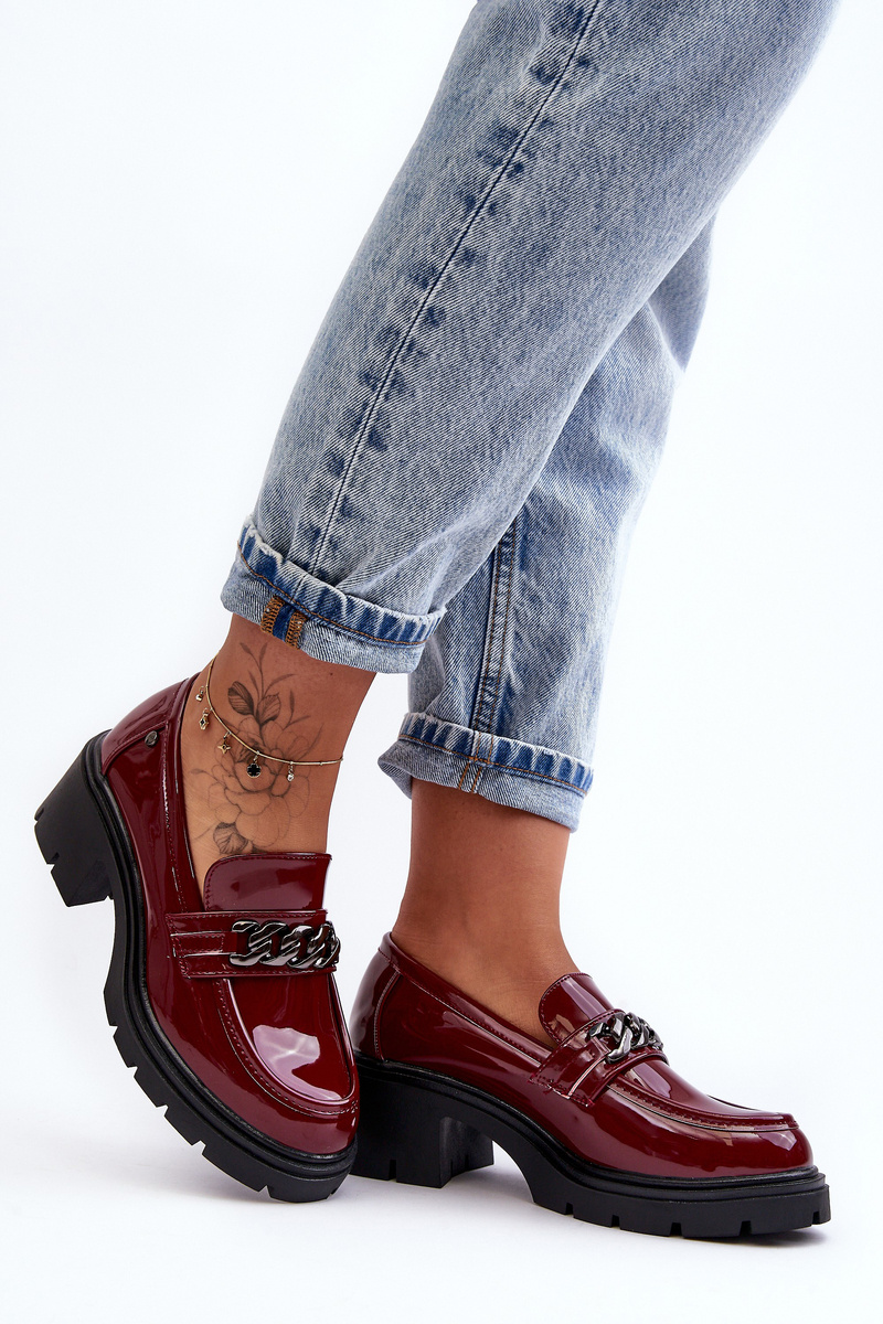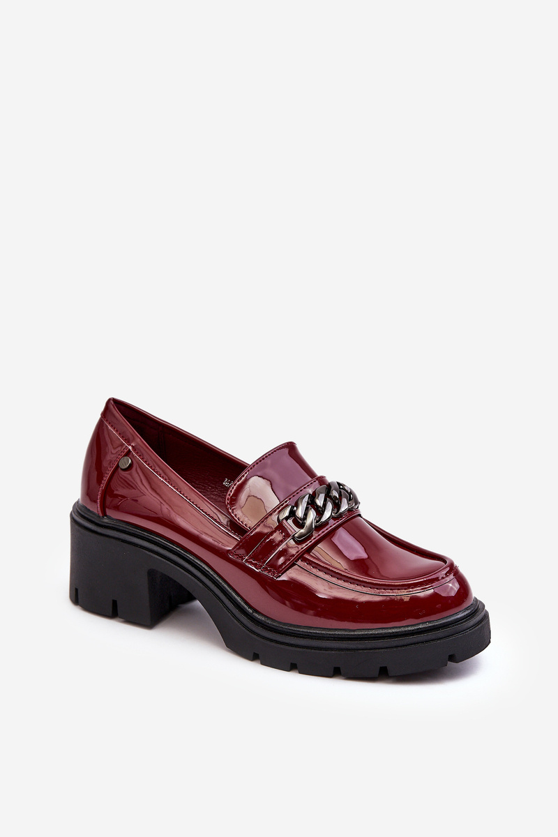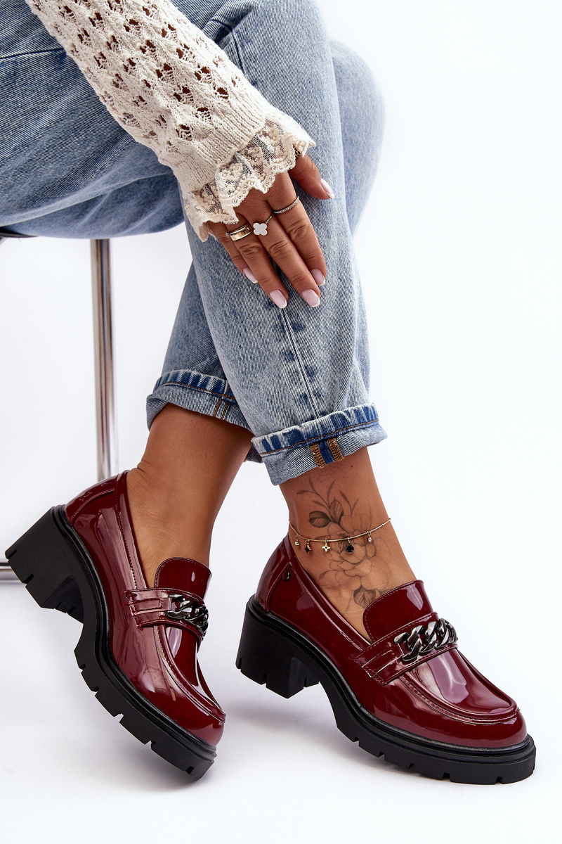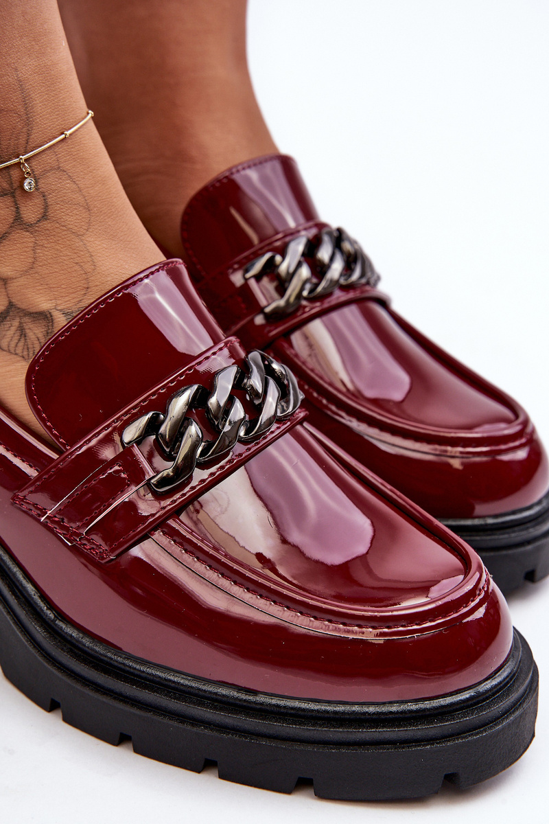 Lakierowane Damskie Półbuty Na Niskim Obcasie Bordowe Blimma