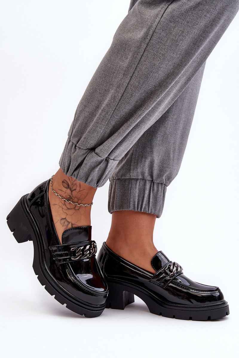 Lakierowane Damskie Półbuty Na Niskim Obcasie Czarne Blimma