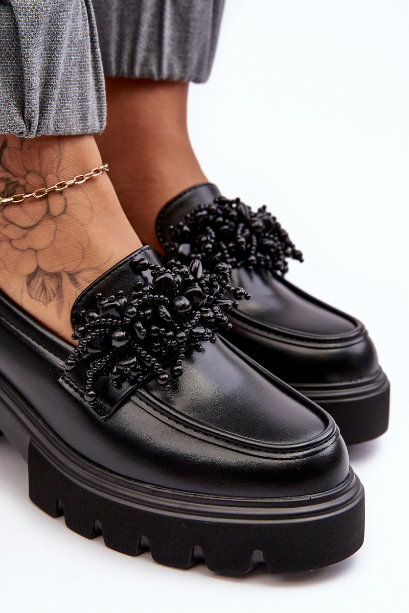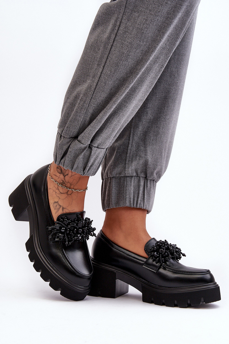 Damskie Skórzane Półbuty Z Ozdobą Czarne Renesma