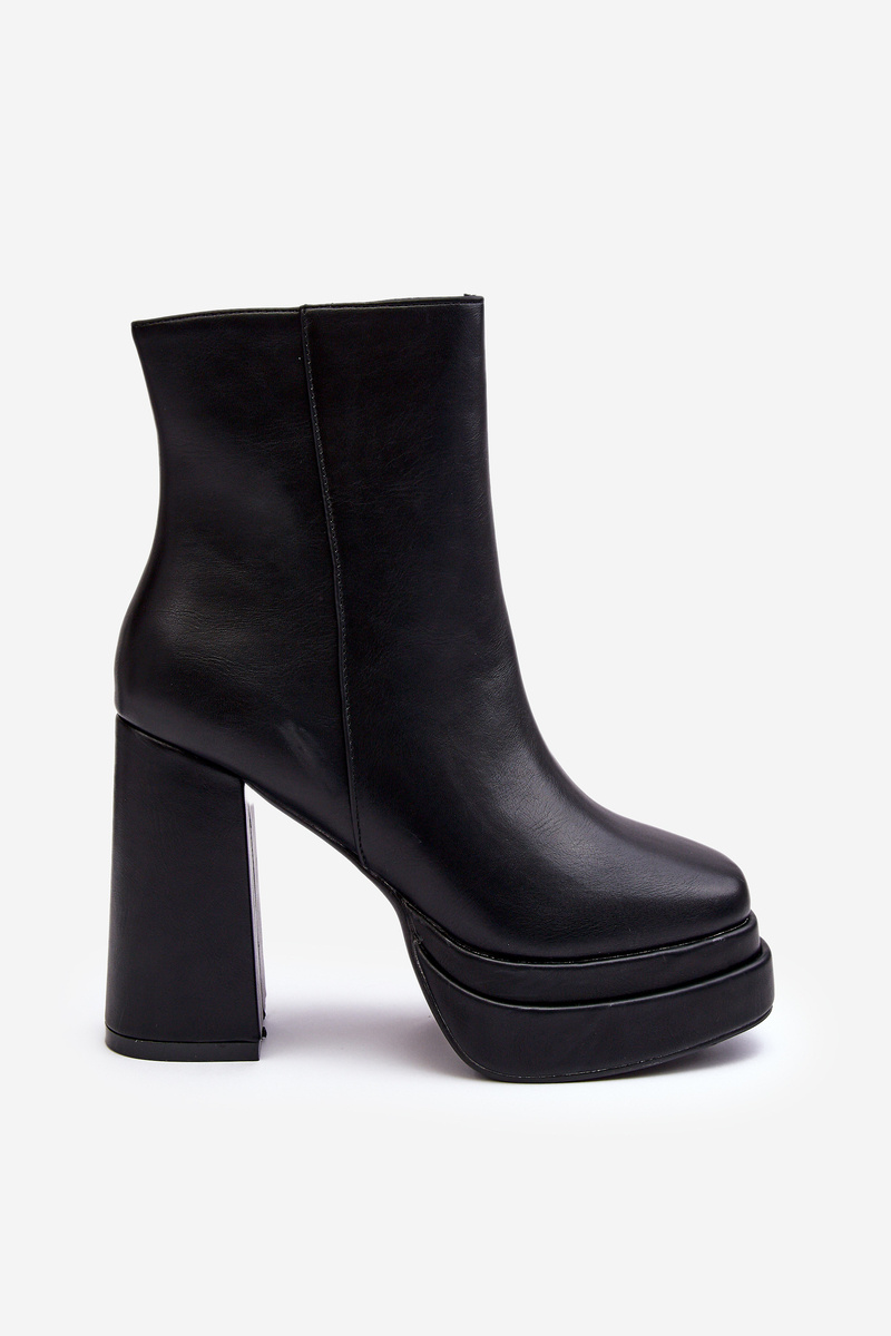 Damskie Botki Na Wysokim Słupku I Platformie Czarne Sandstra