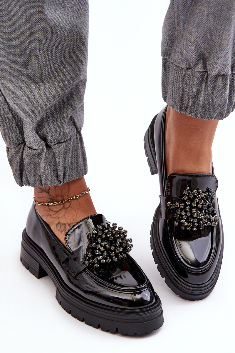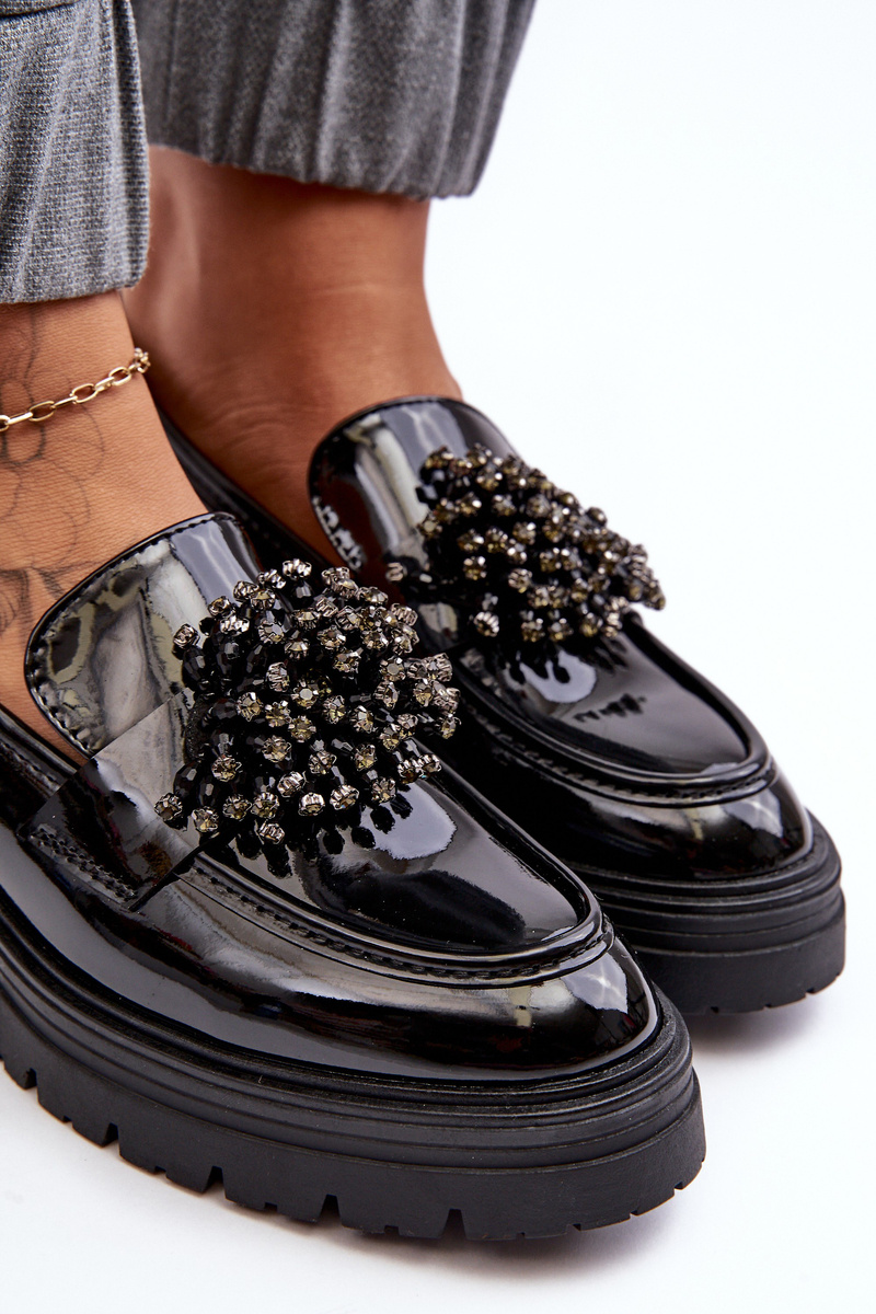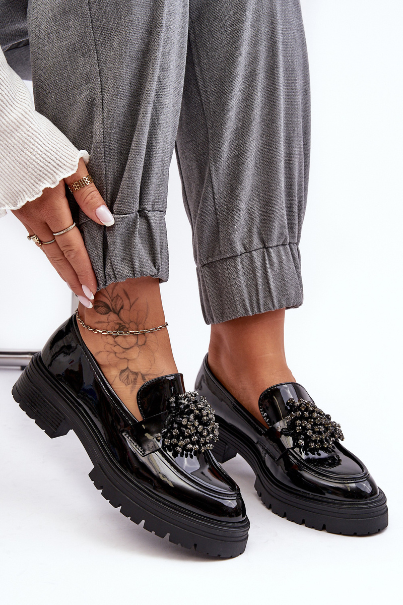 Lakierowane Półbuty Damskie Zdobione Czarne Annella