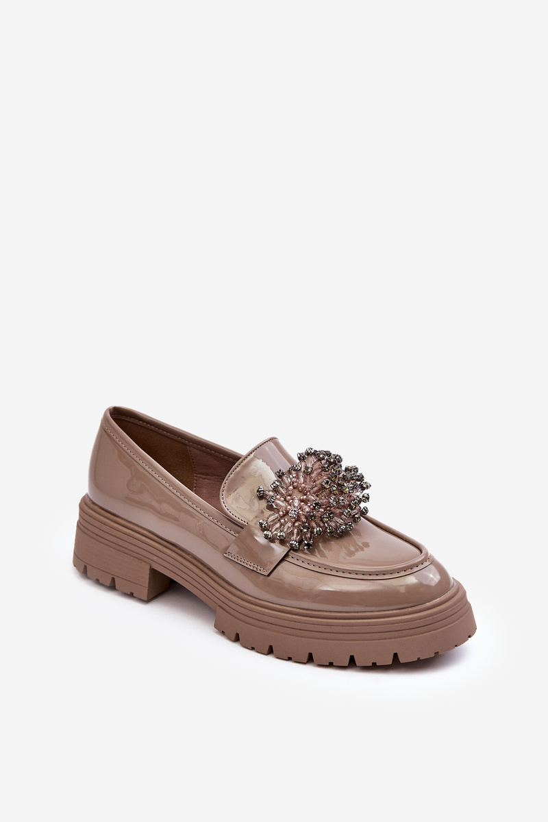 Lakierowane Półbuty Damskie Zdobione Beżowe Annella
