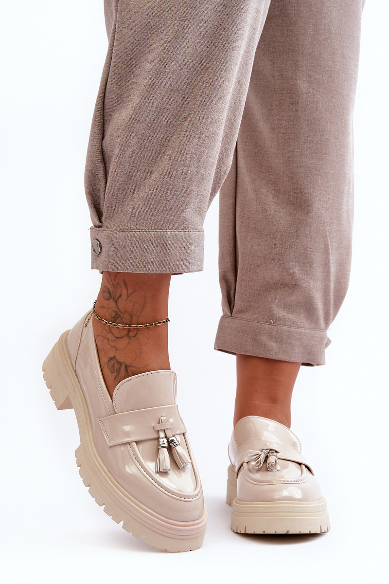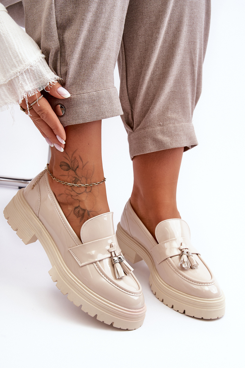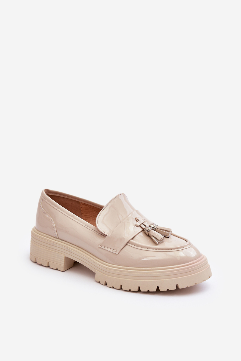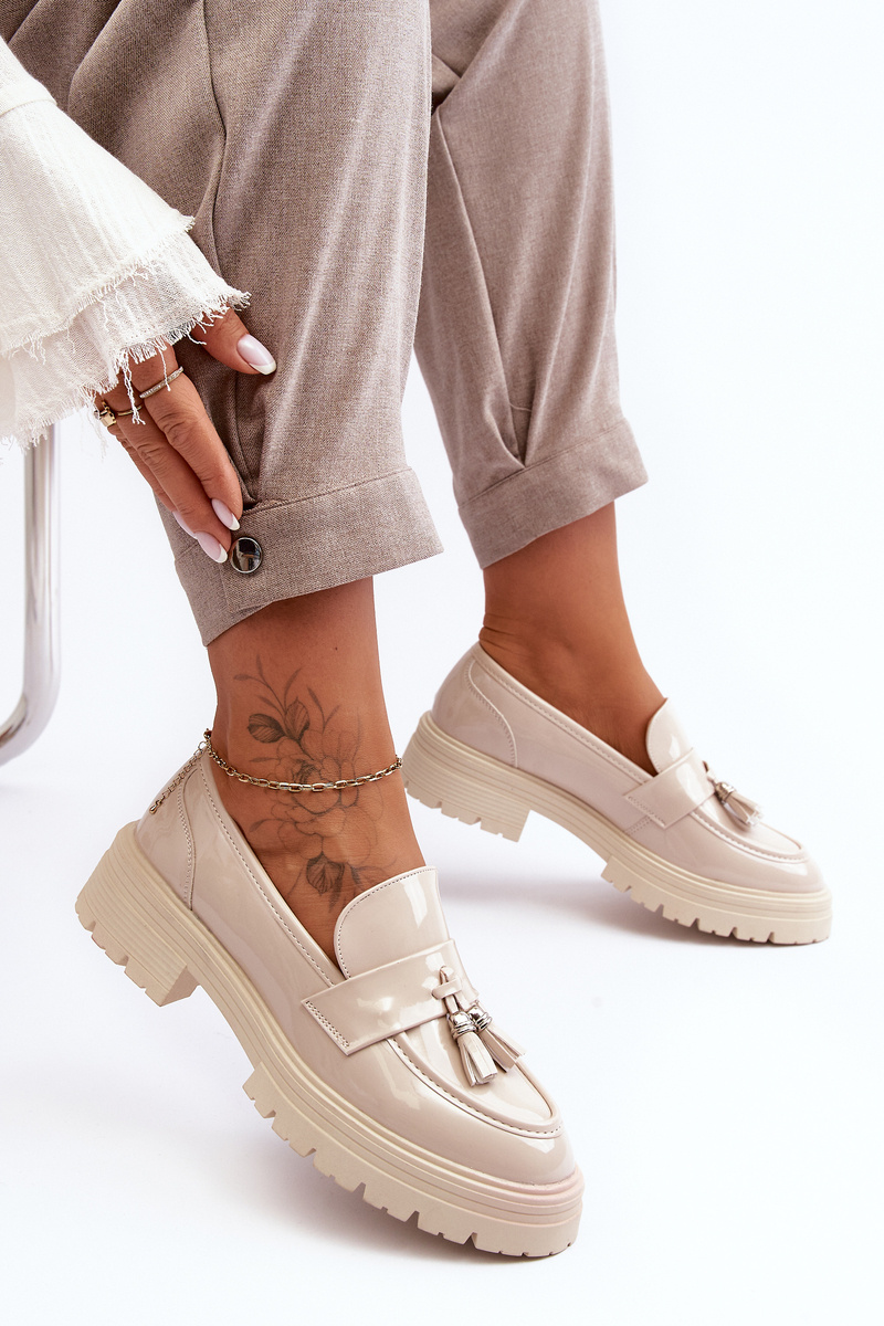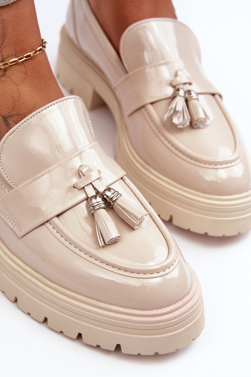 Lakierowane Półbuty Loafersy Z Frędzlami Jasnobeżowe Velenase