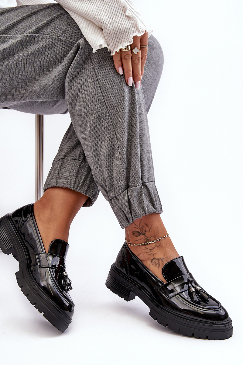 Lakierowane Półbuty Loafersy Z Frędzlami Czarne Velenase