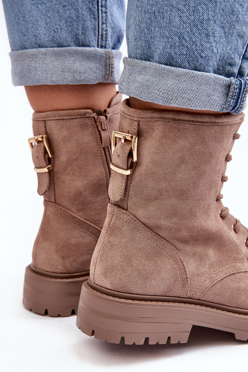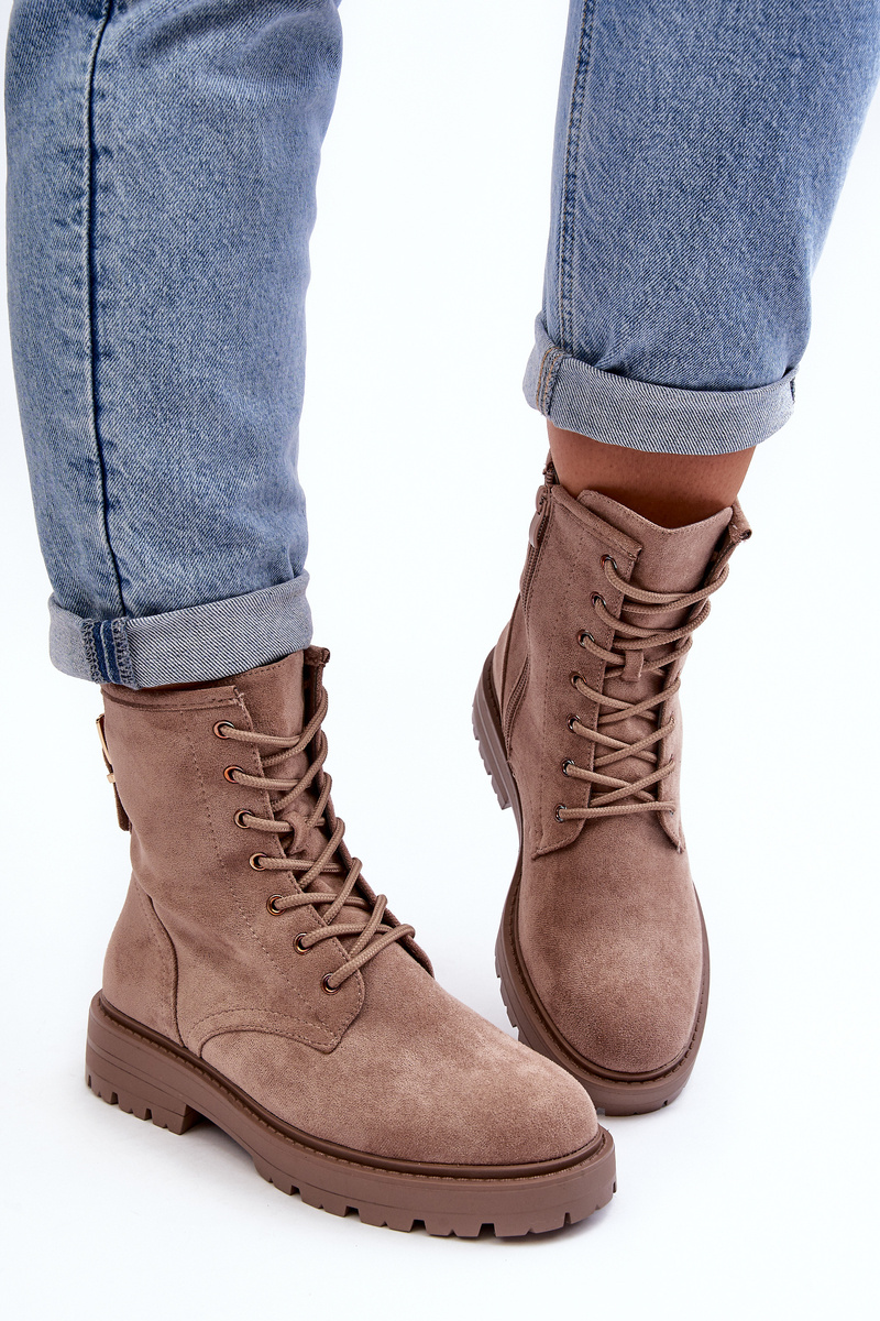 Damskie Botki Workery Na Suwak Ciemnobeżowe Ninsuni