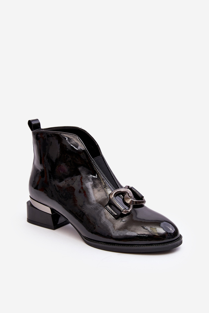 Lakierowane Botki Damskie Na Niskim Obcasie Ocieplane Czarne Loos