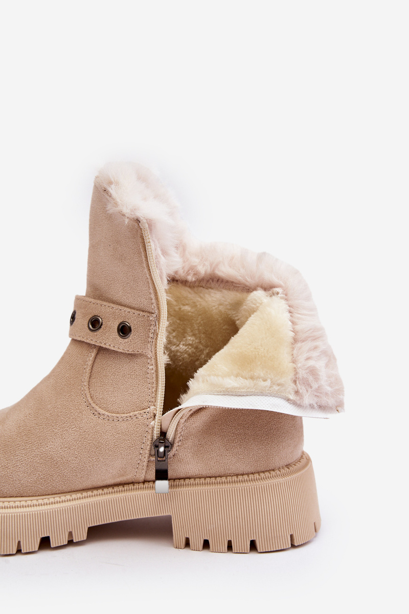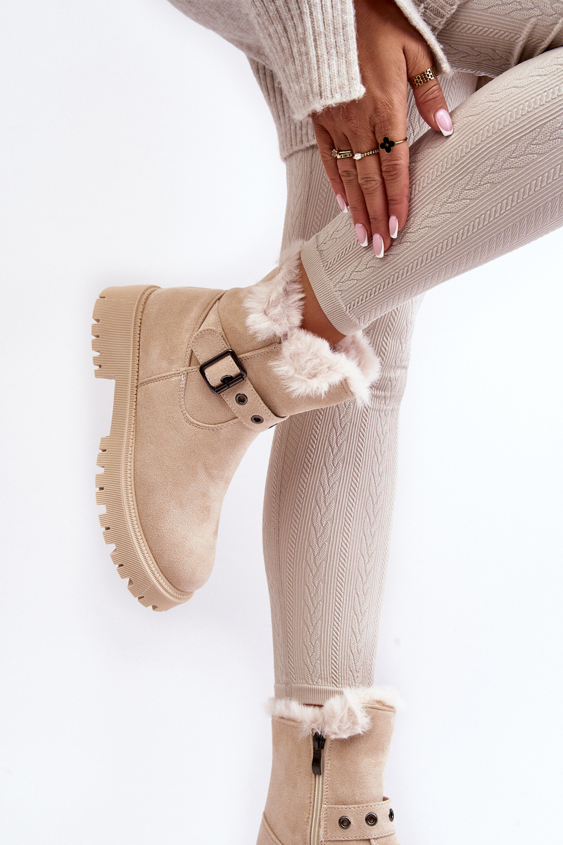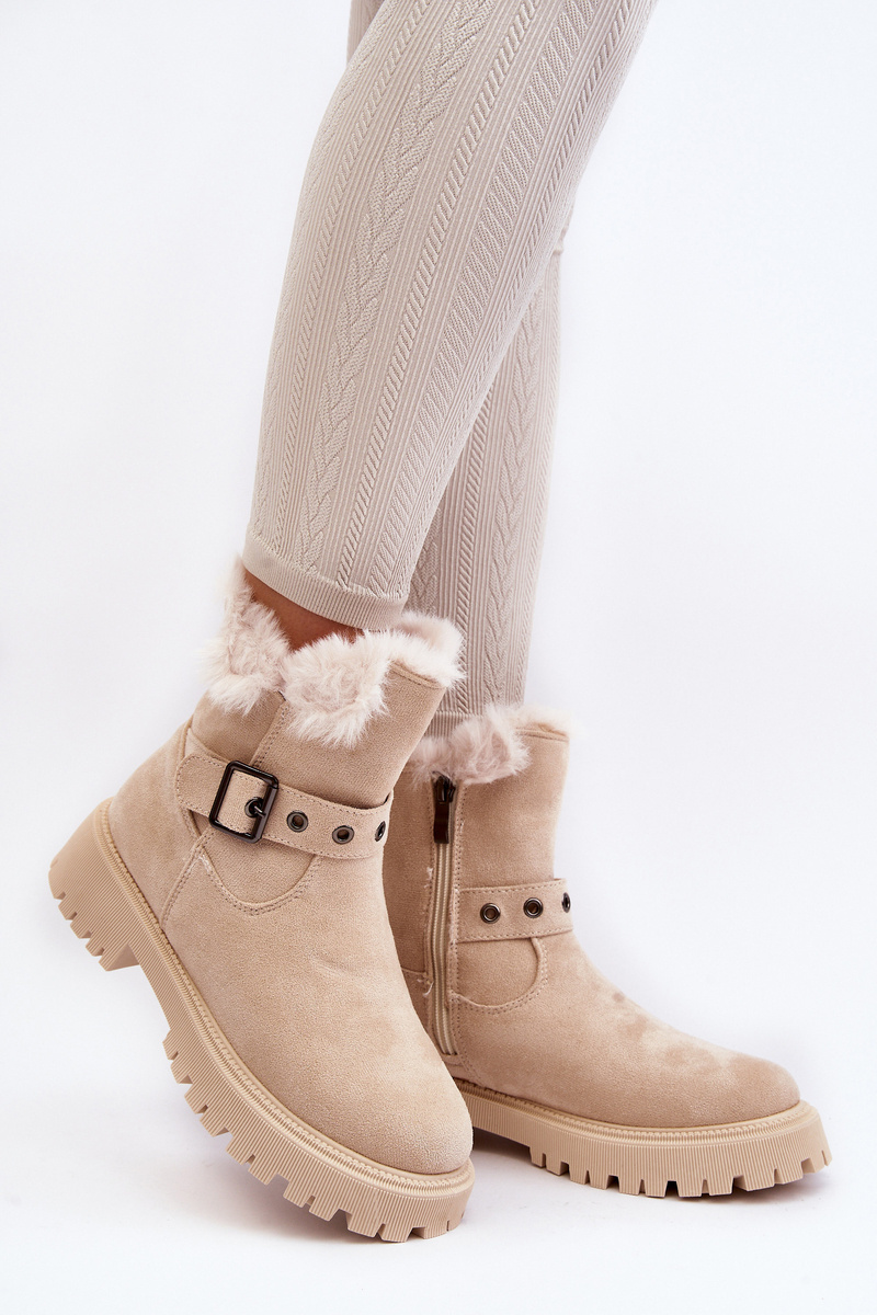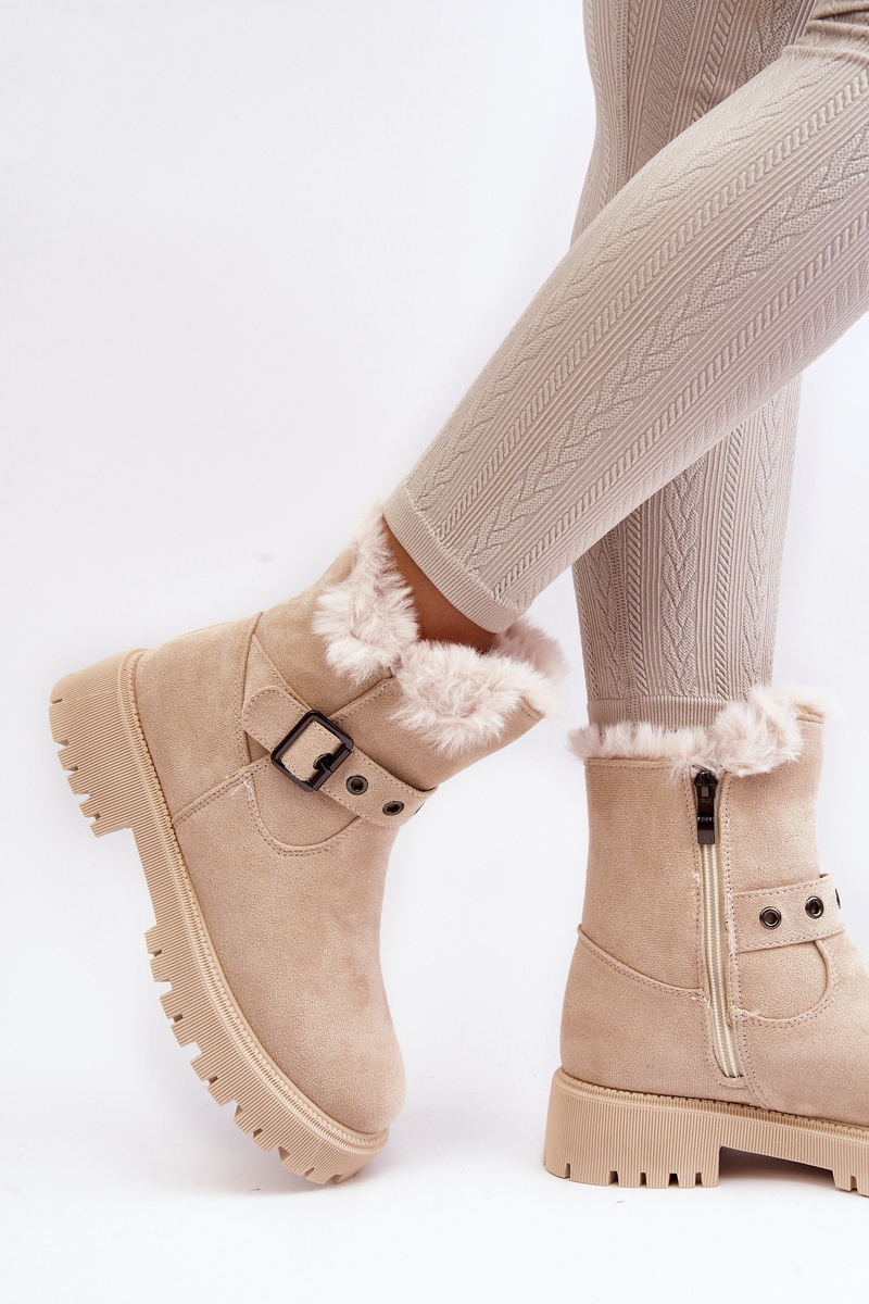 Botki Damskie Z Futerkiem Na Suwak Beżowe Morcos