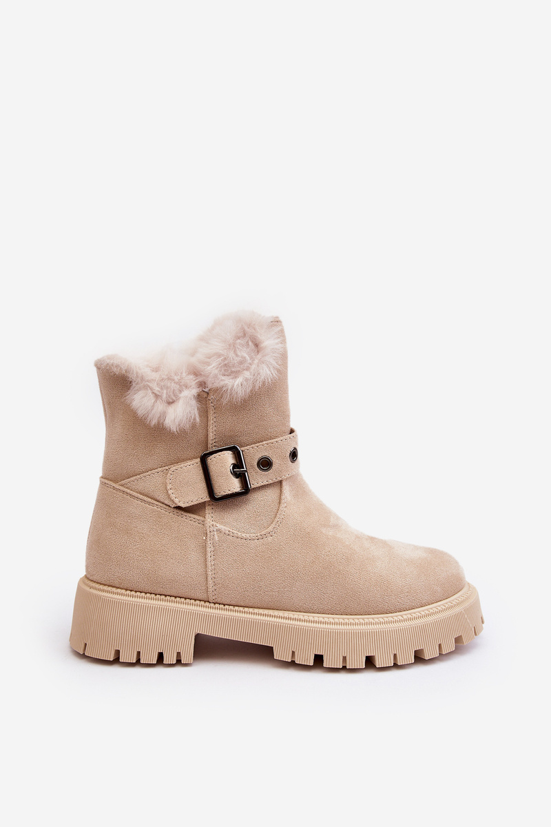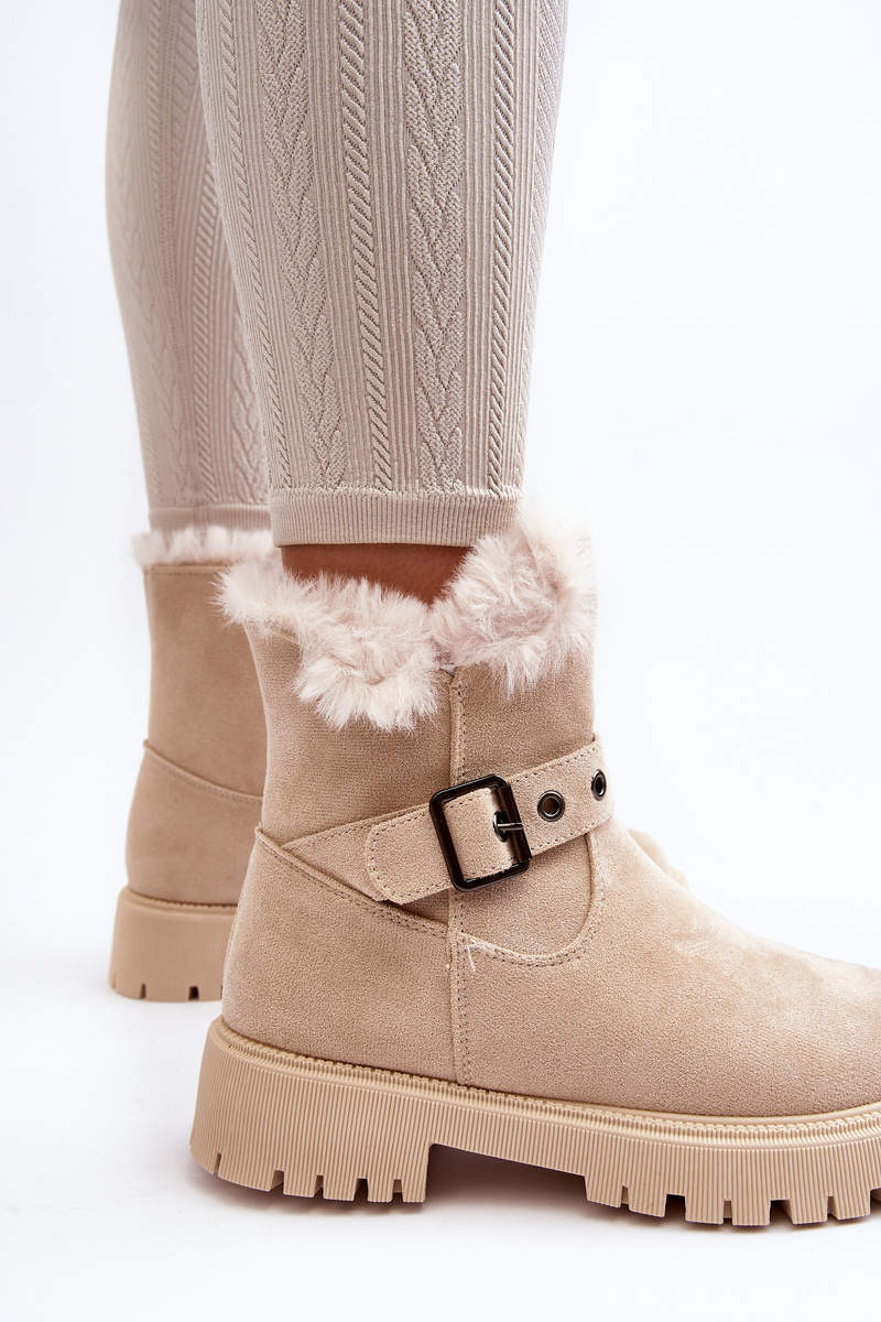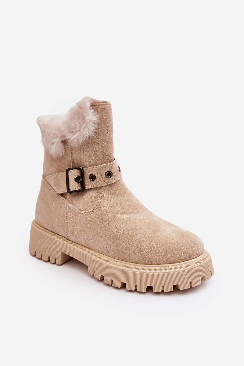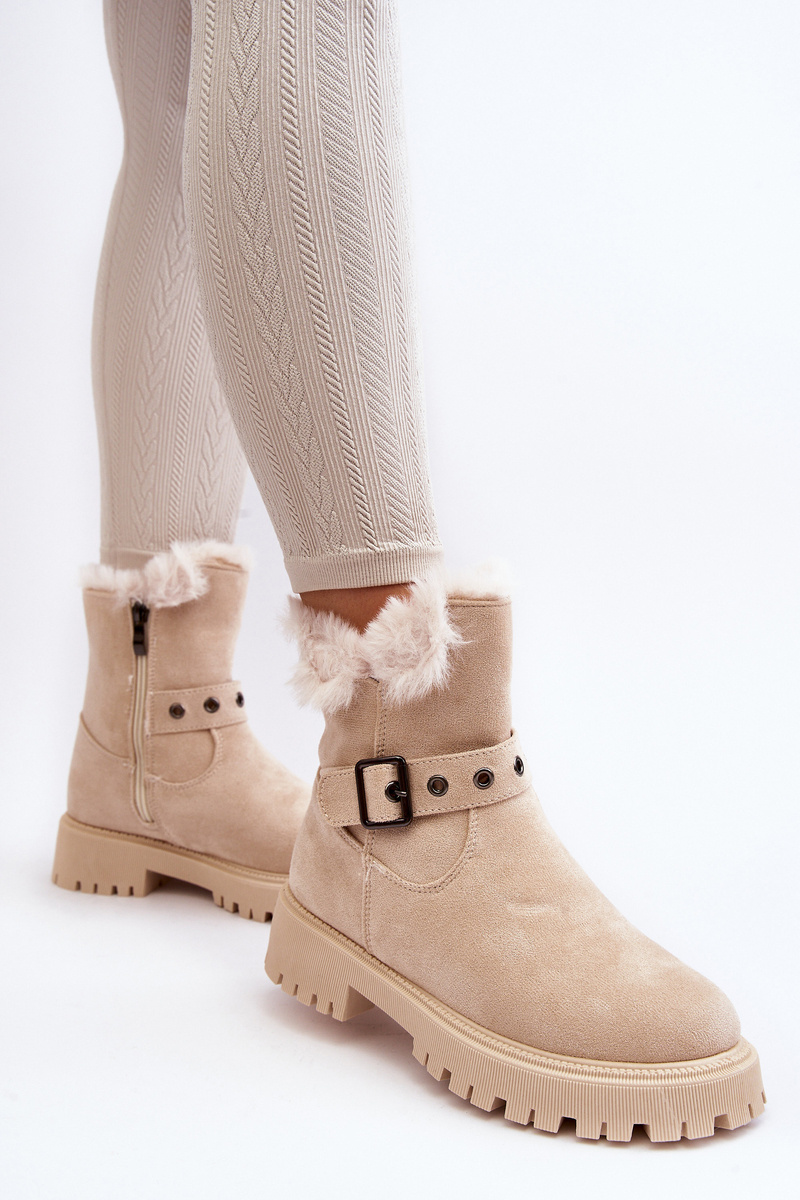 Botki Damskie Z Futerkiem Na Suwak Beżowe Morcos