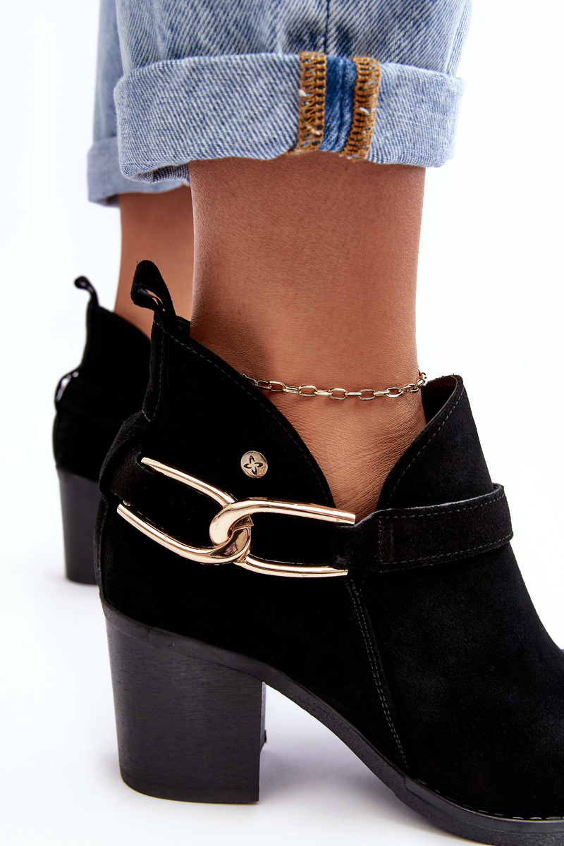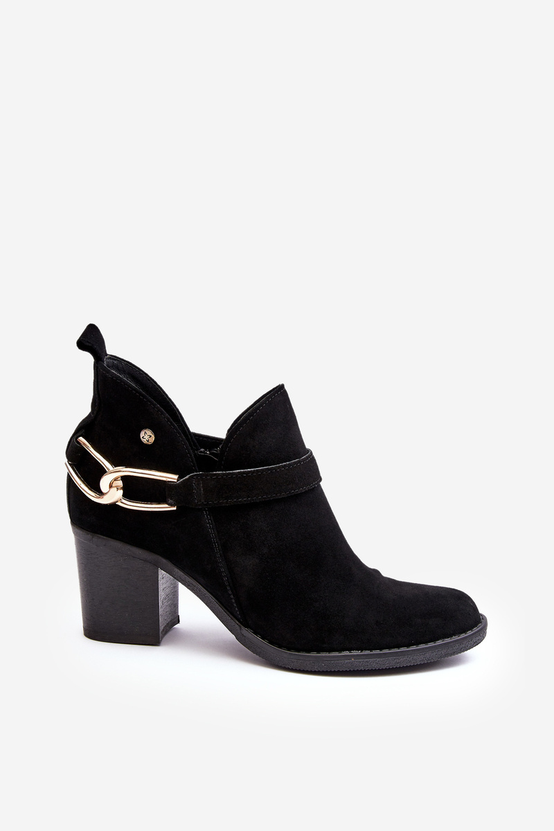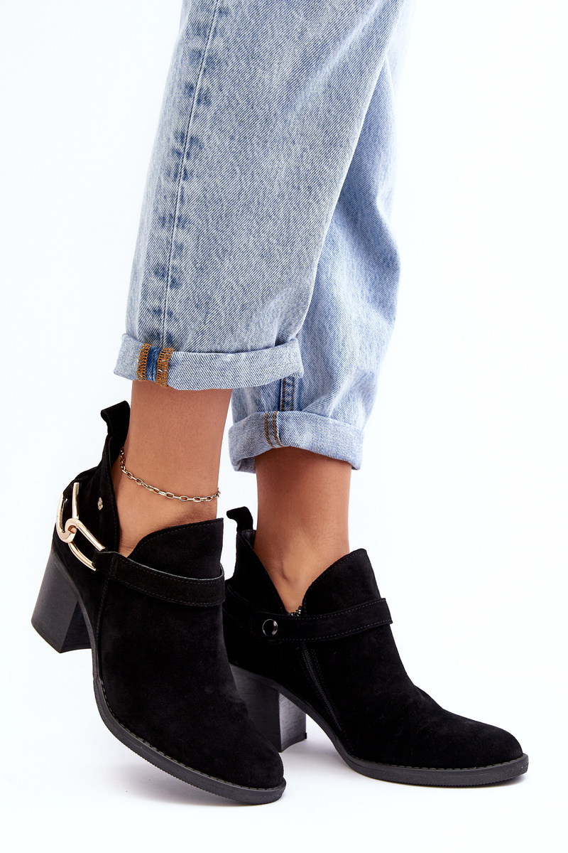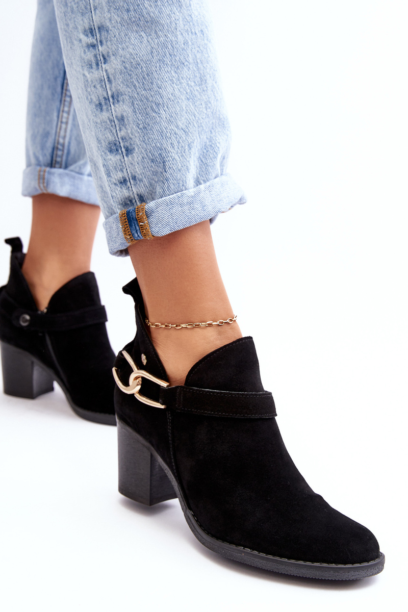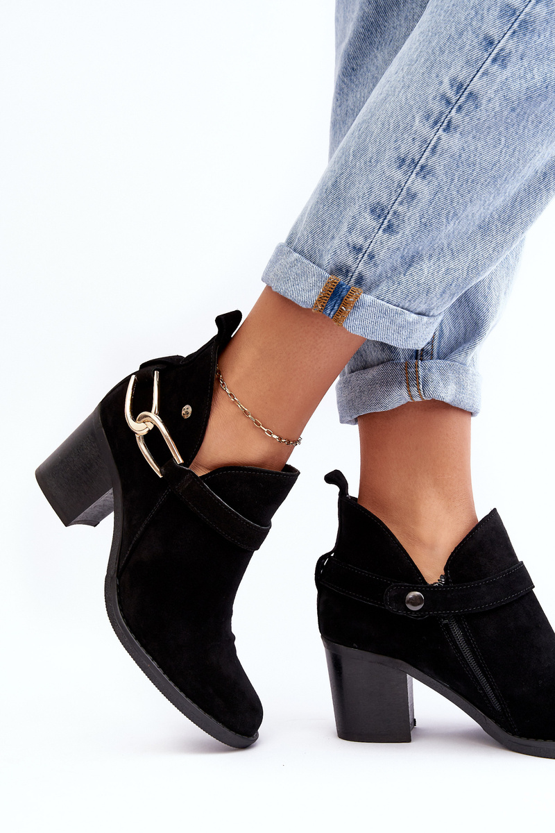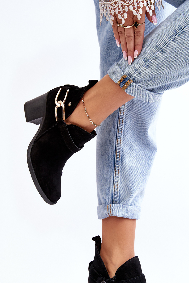 Damskie Zamszowe Botki Na Obcasie Maciejka 06247-01 Czarne