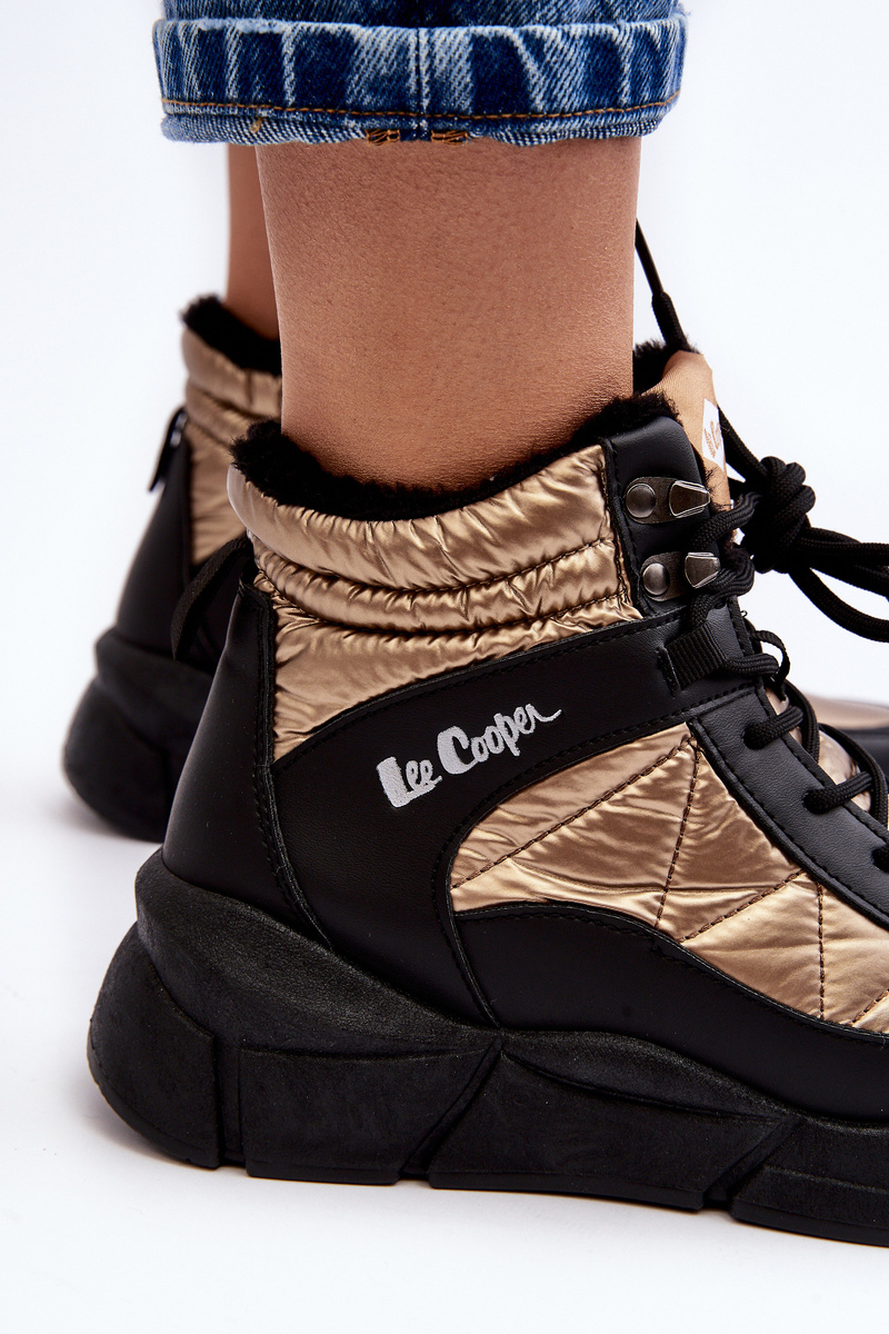 Klasyczne botki damskie marki Lee Cooper zostały wykonane z połączenia eko skóry i materiału tekstylnego. Osadzone na platformie z gumowego tworzywa. Model z cholewką za kostkę. Dodatkowo zapiętek jest usztywniany. Botki posiadają solidne sznurowanie umożliwiające odpowiednie dopasowanie do tęgości nogi. Przy wyborze rozmiaru prosimy sugerować się tabelą rozmiarów.
