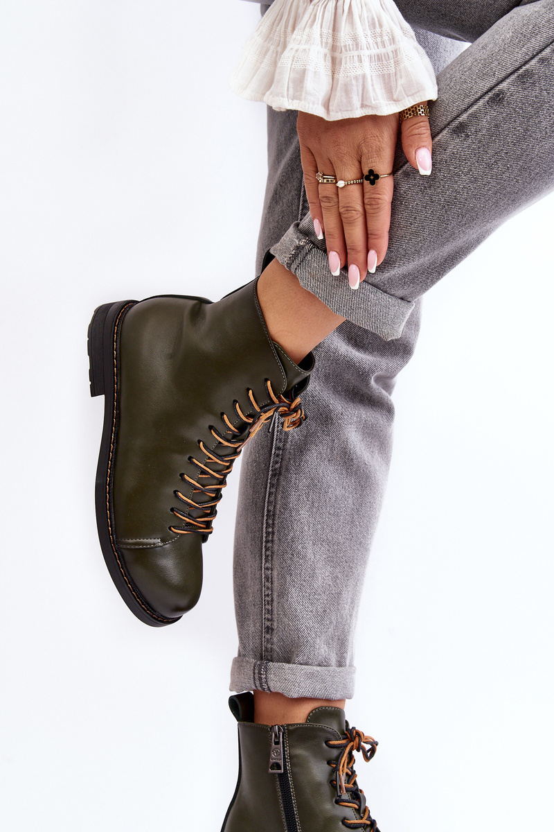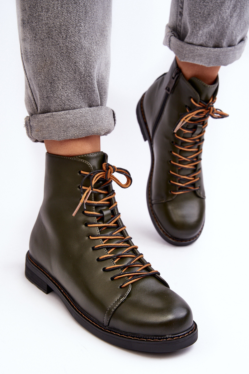 Skórzane Botki Trzewiki Damskie Zielone Ethel