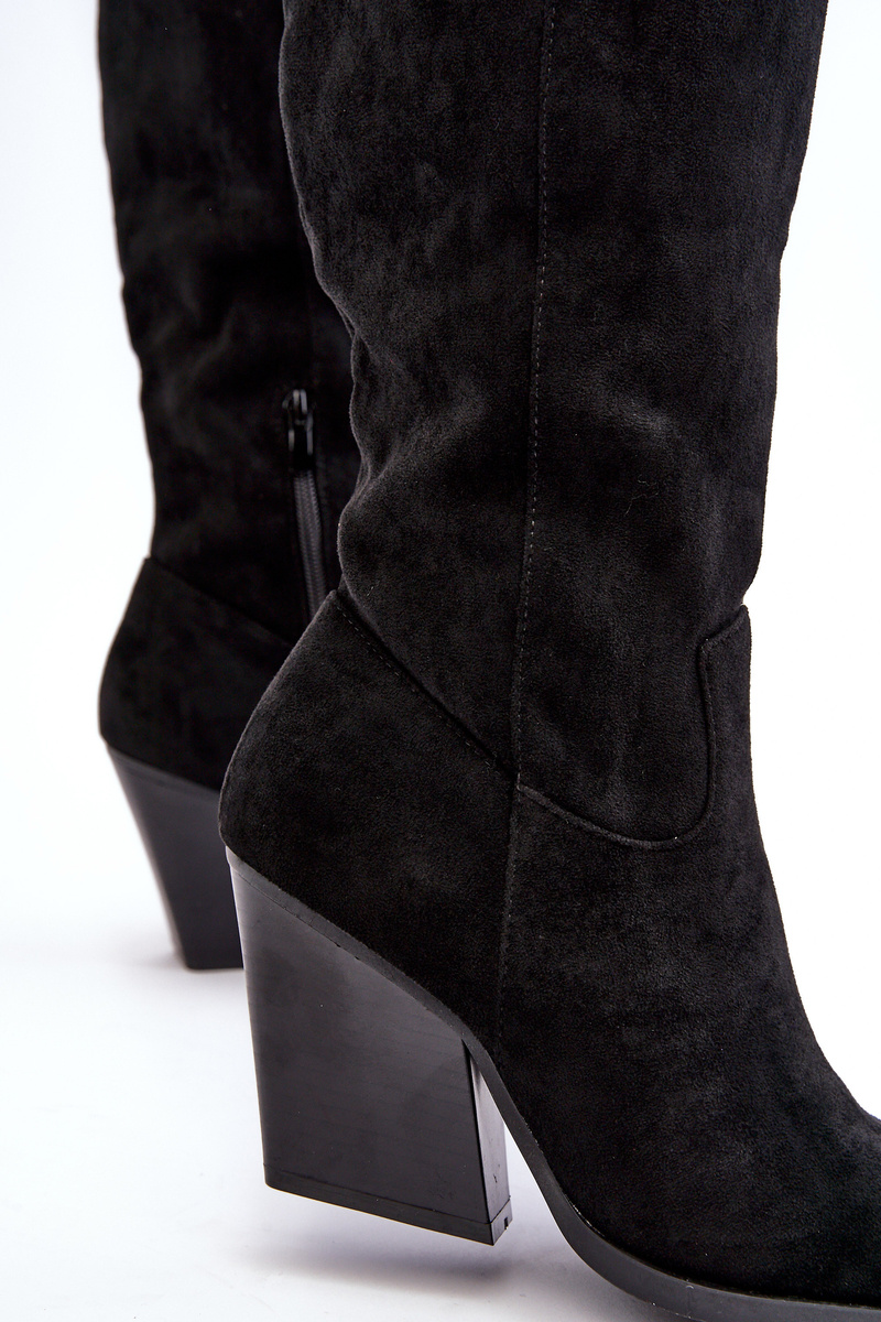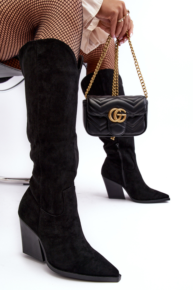 Modne Zamszowe Kozaki Kowbojki Czarne Delia