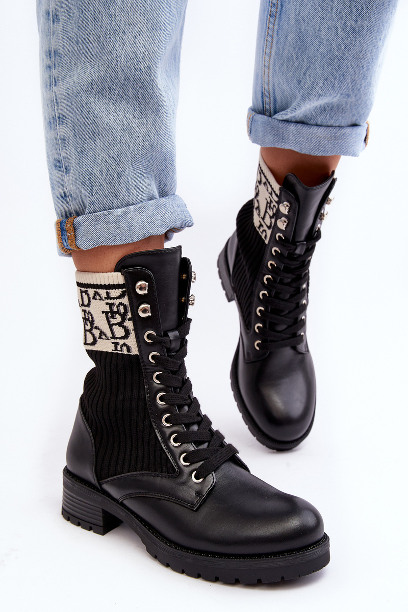 Damskie Botki Workery Ze Skarpetą Czarne Hakina
