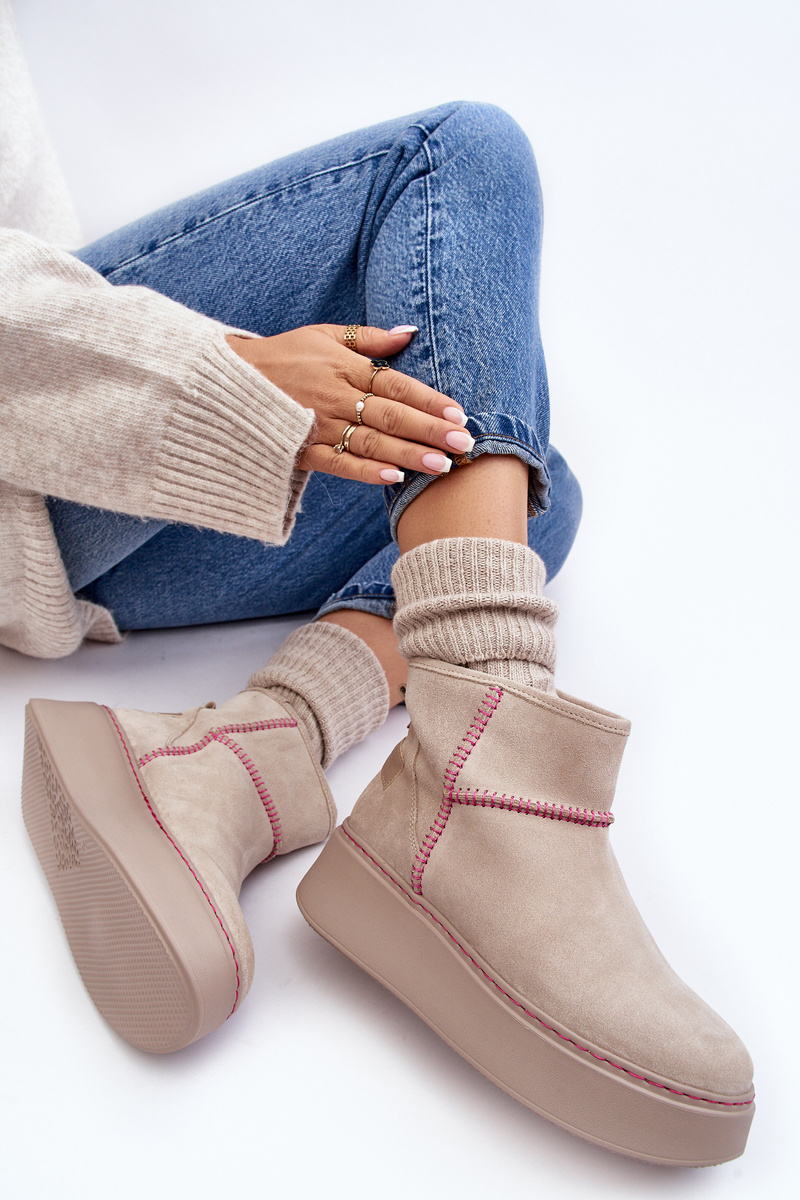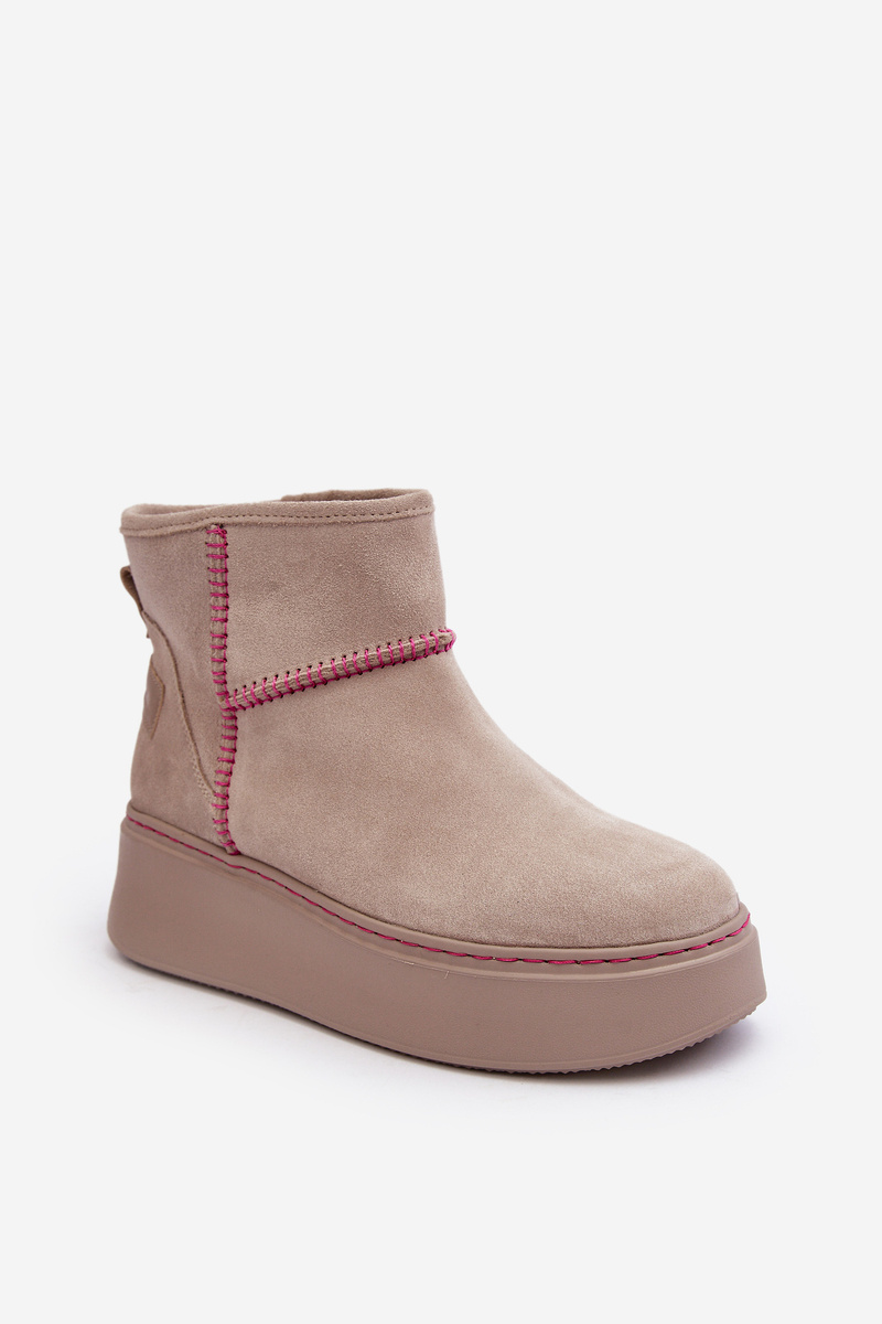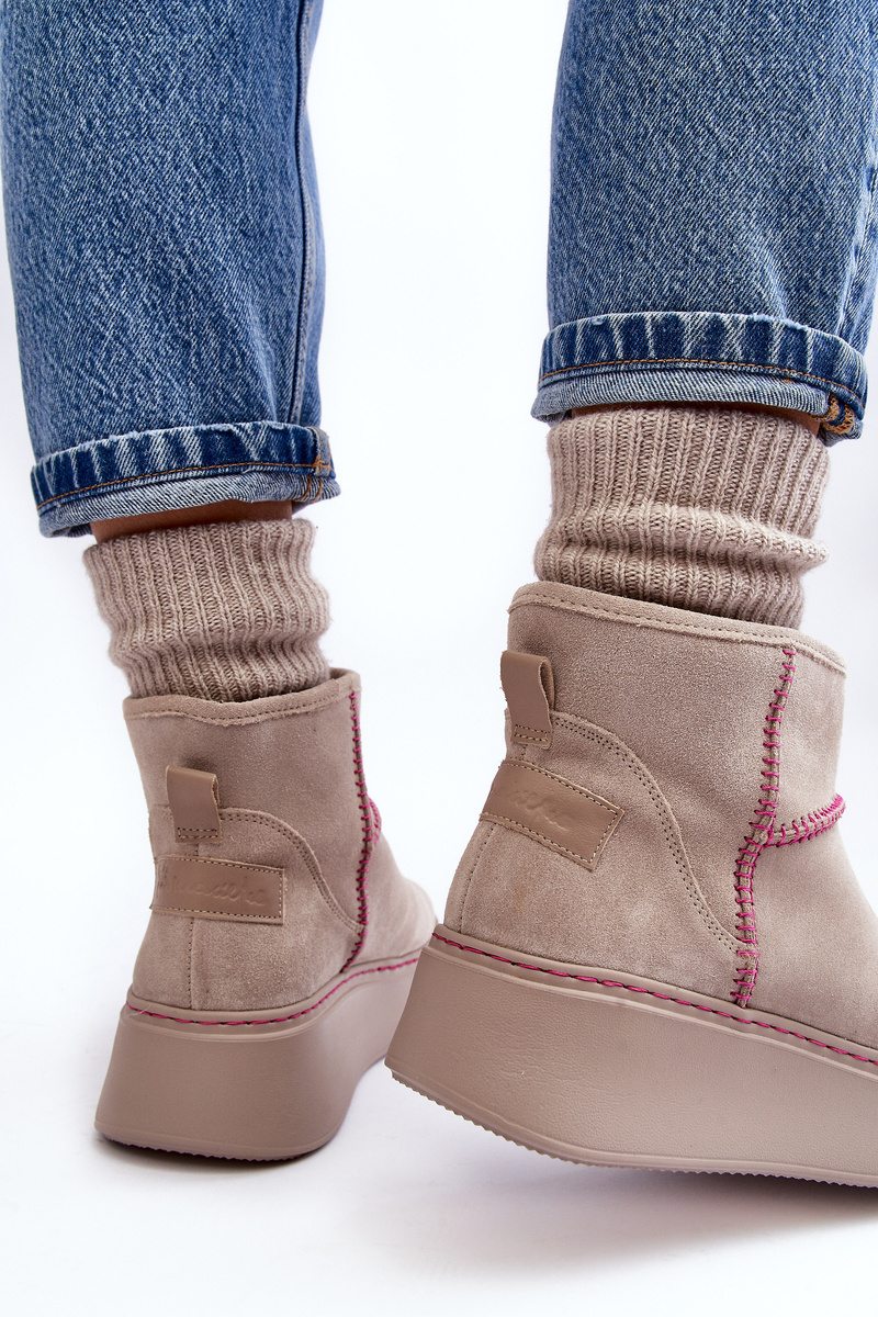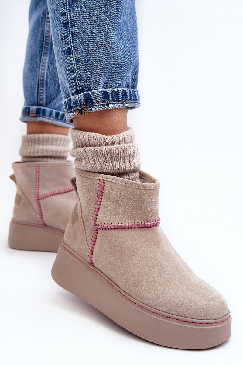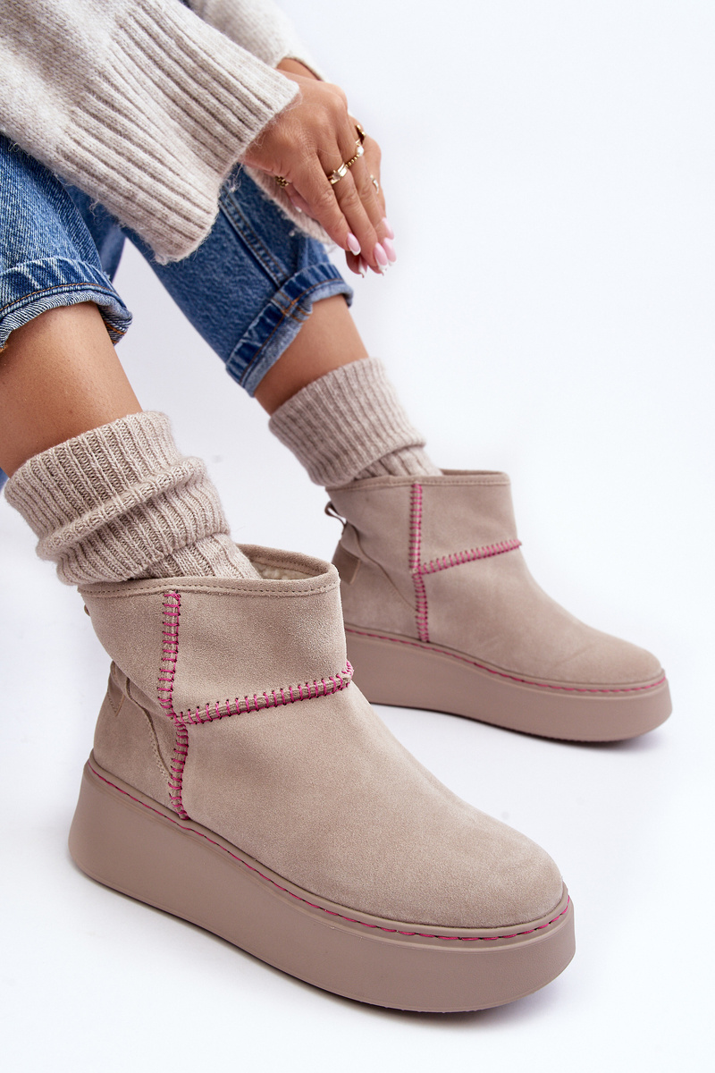 Damskie Zamszowe Śniegowce Maciejka 06257-22 Jasnobeżowe