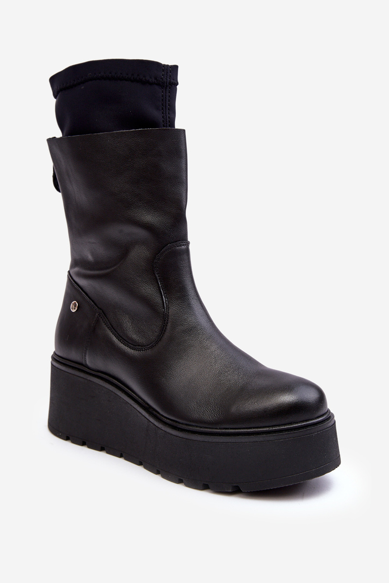 Damskie Skórzane Botki Na Masywnej Platformie Maciejka 06246-01 Czarne