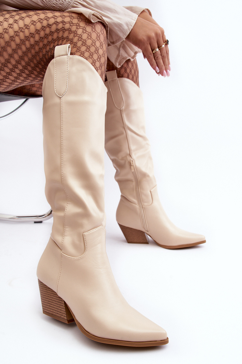 Damskie Kozaki Kowbojki Na Obcasie Jasnobeżowe Kaspella