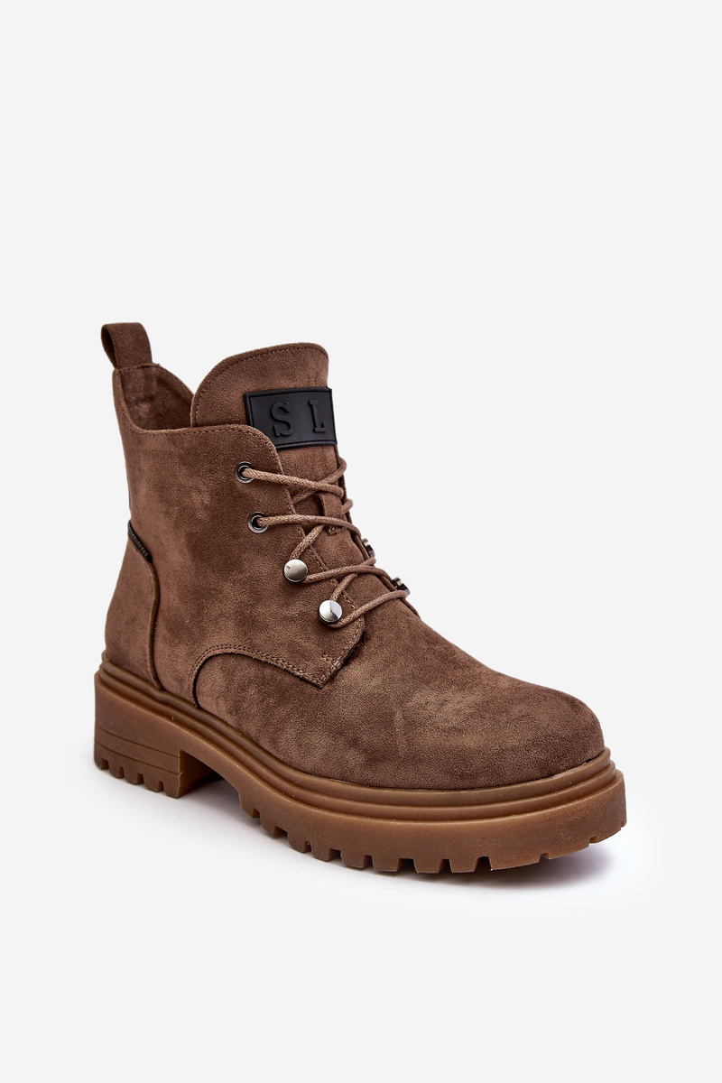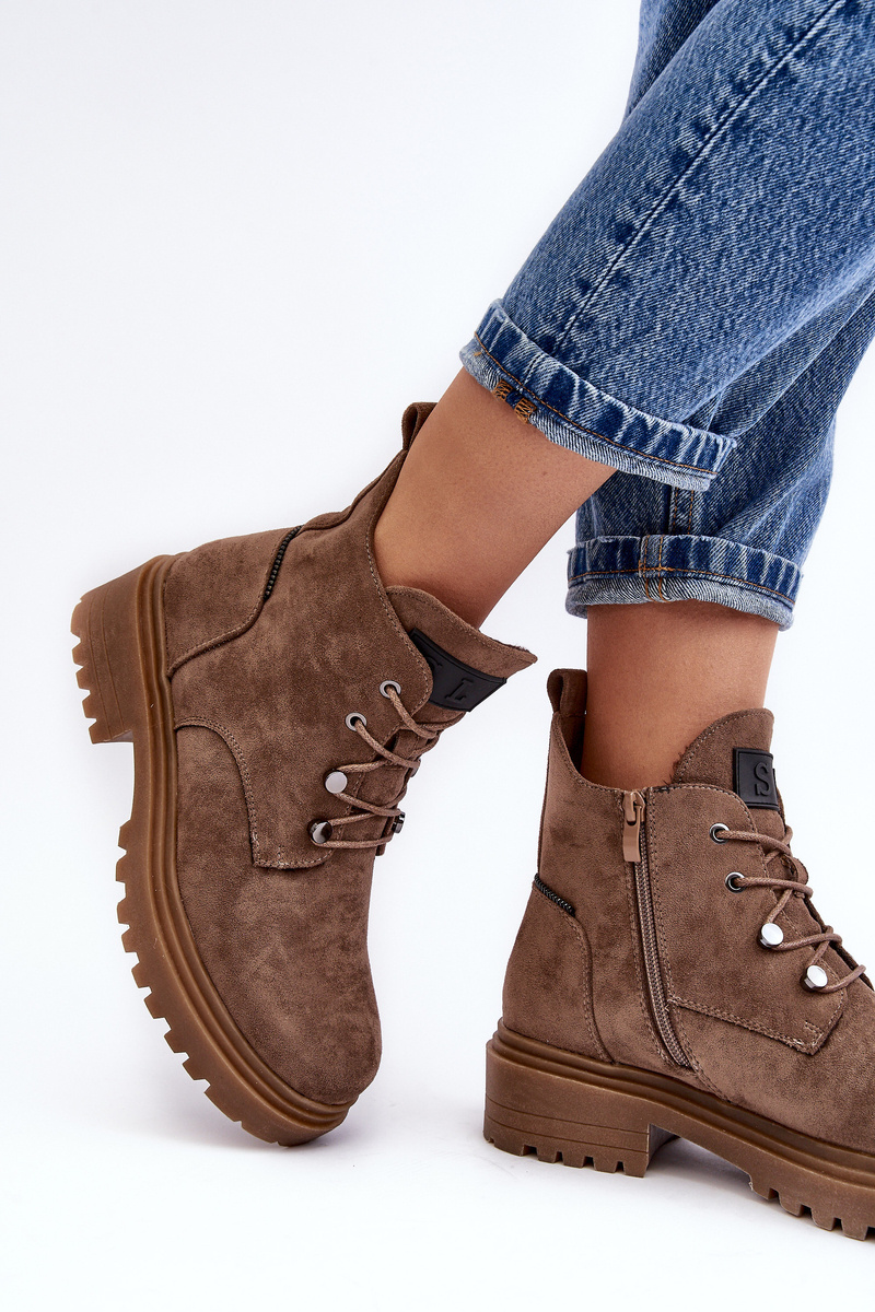 Niskie Botki Damskie Ocieplane Na Suwak Ciemnobeżowe Cameronia