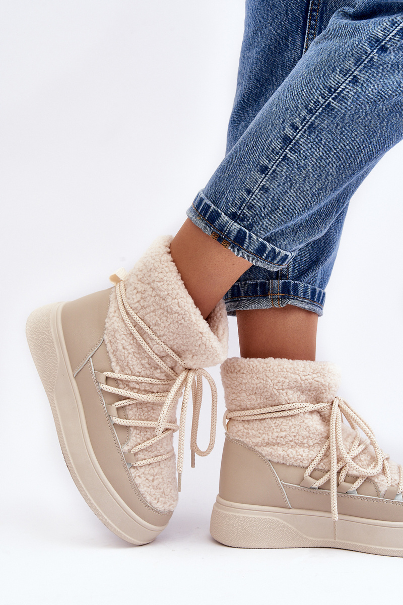 Damskie Śniegowce Na Platformie Jasnobeżowe Ahatissa