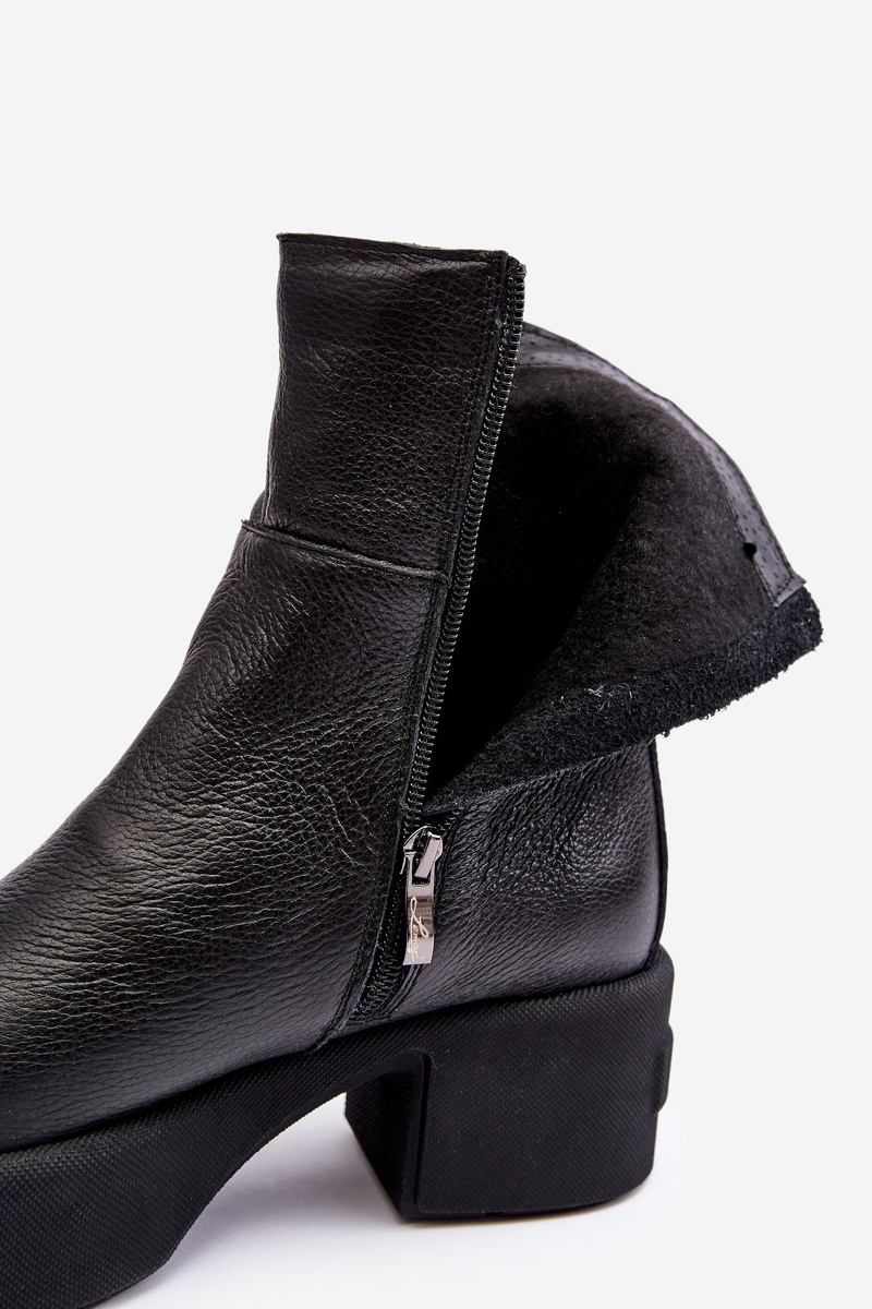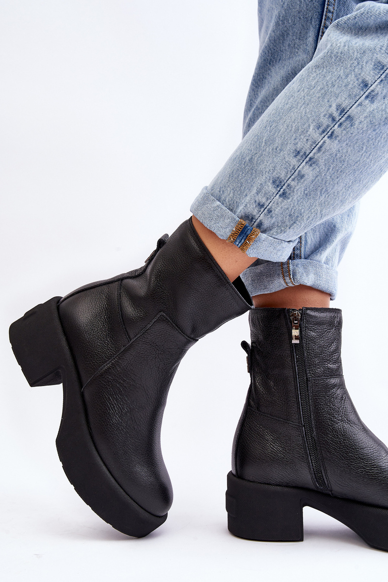 Skórzane Botki Na Niskim Obcasie Czarne Lemar Volavola