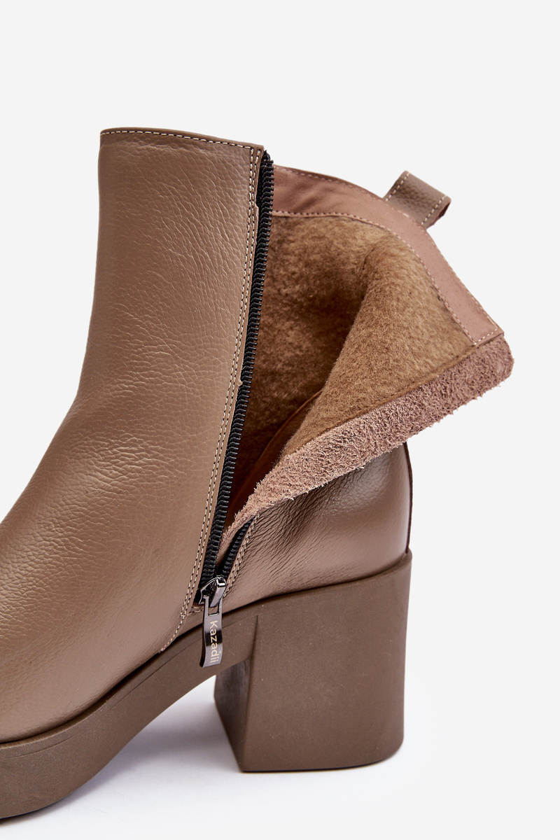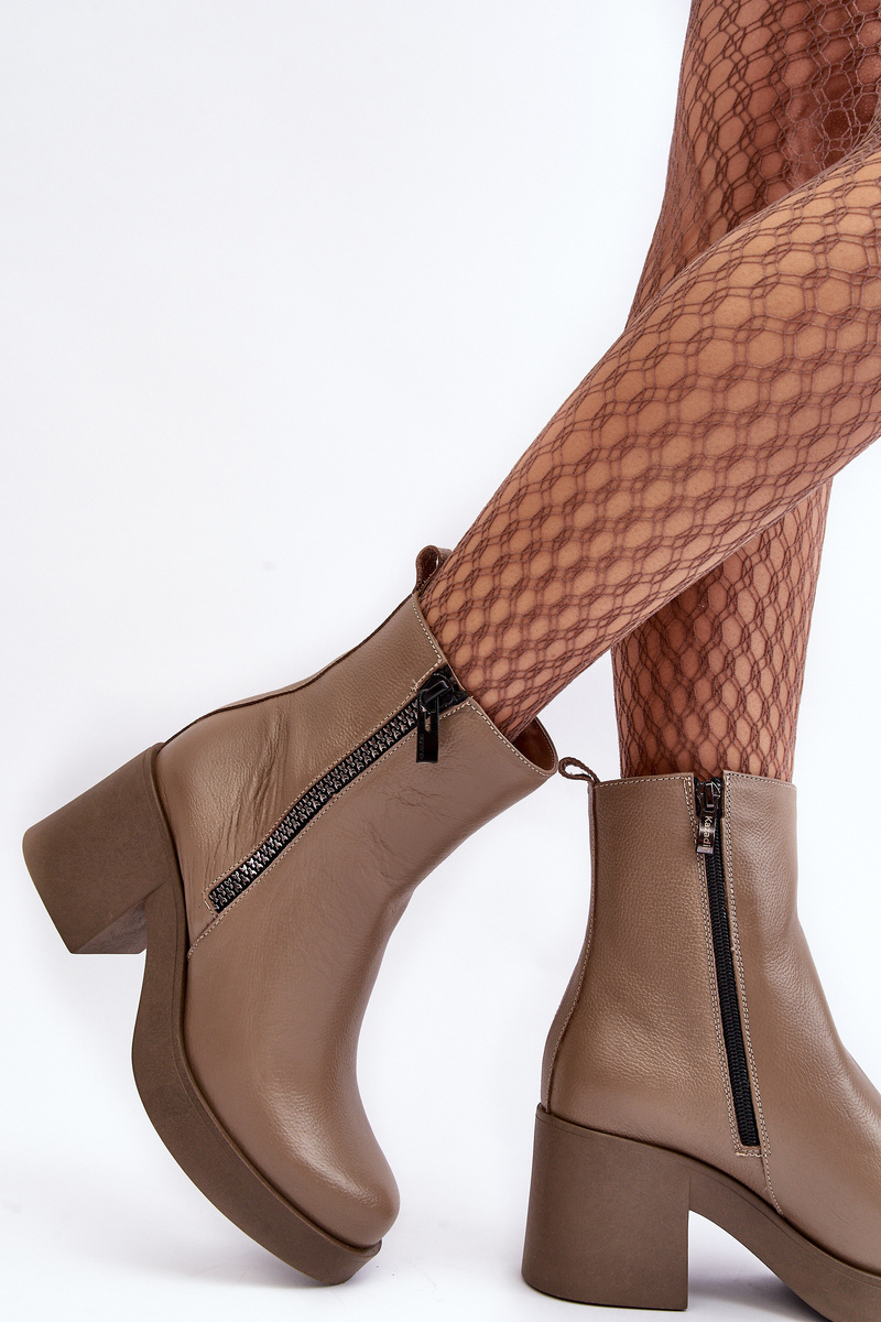 Botki Skórzane Na Masywnym Obcasie Z Suwakami Ciemnobeżowe Lemar Littosa