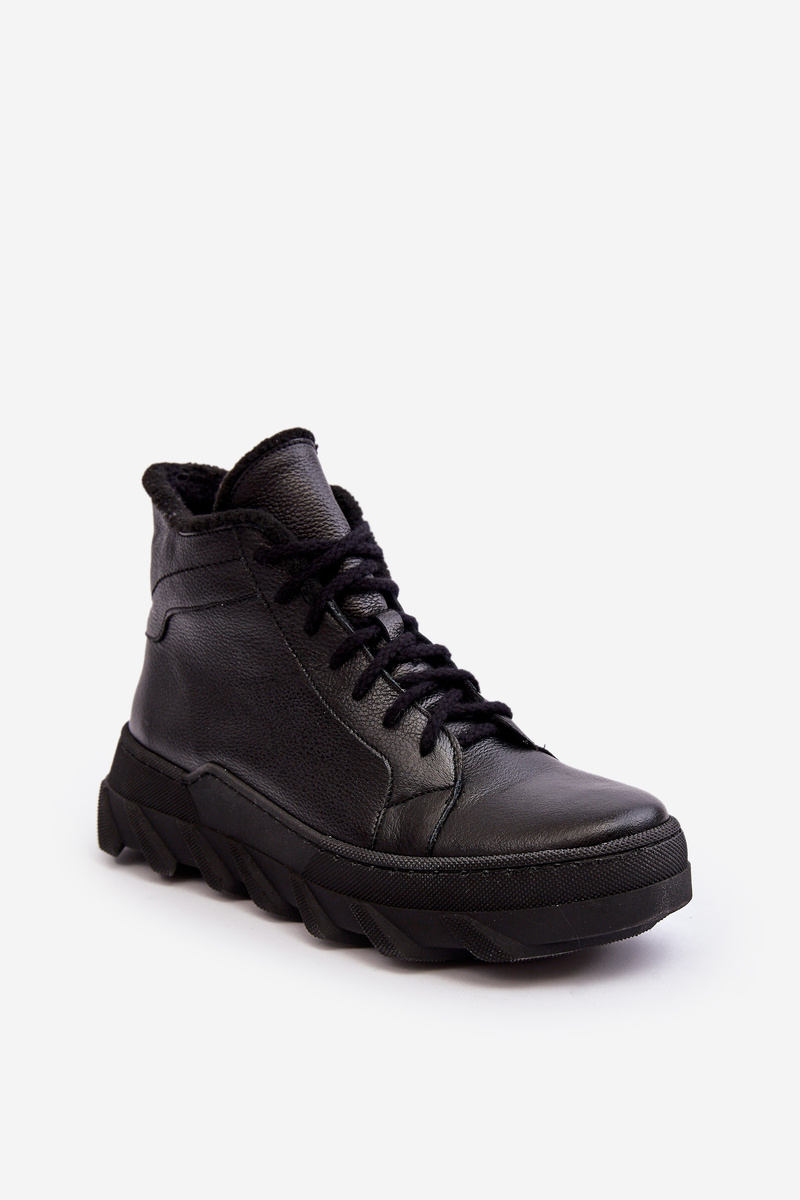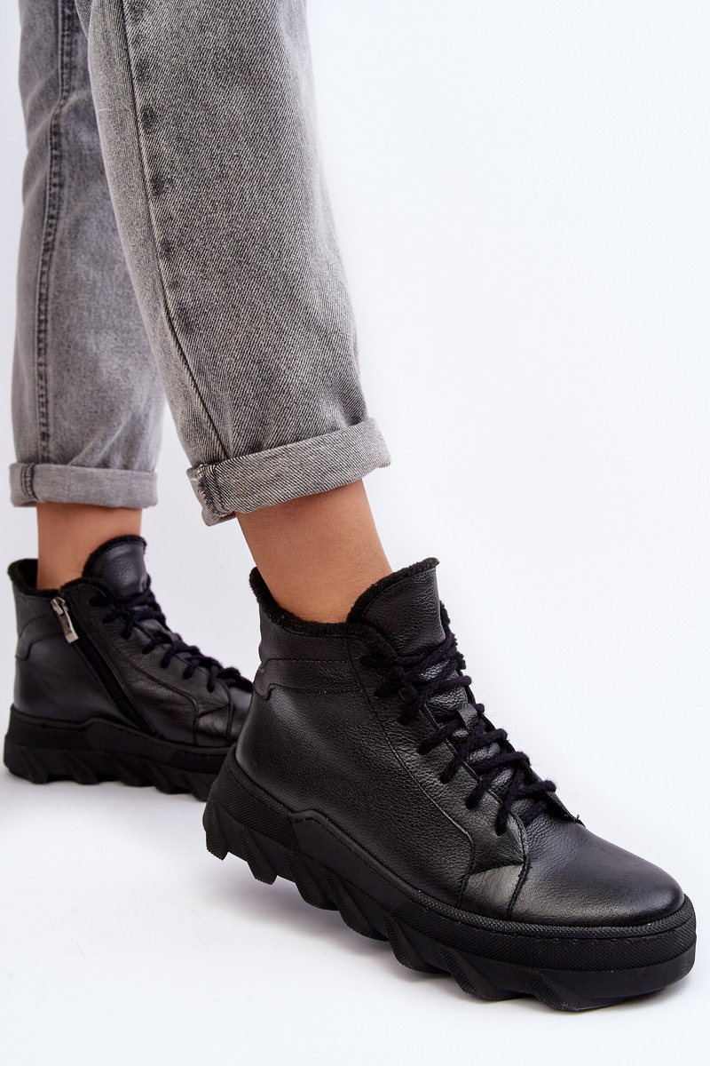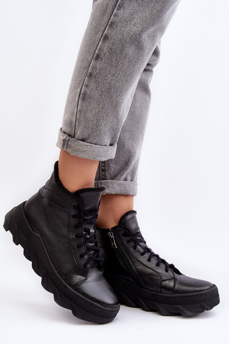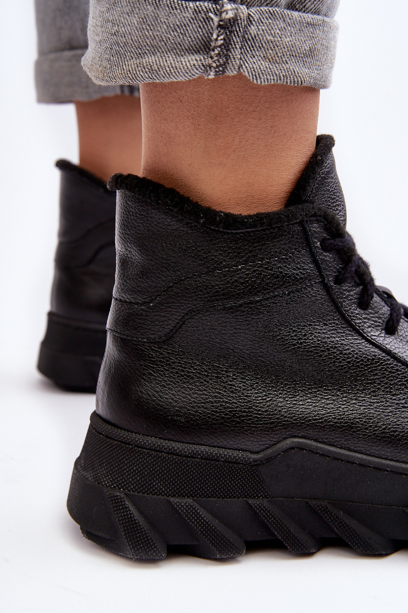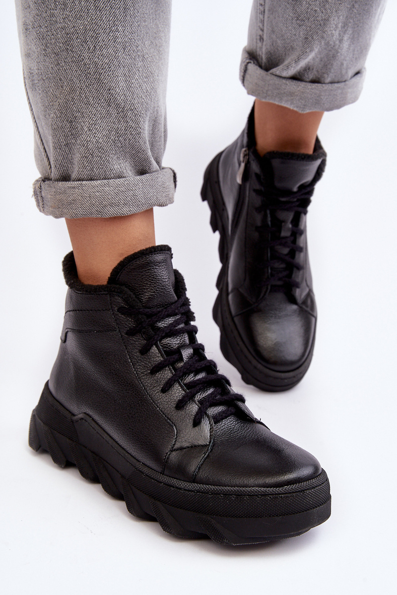 Ocieplane Skórzane Botki Damskie Na Platformie Czarne Lemar Jevette
