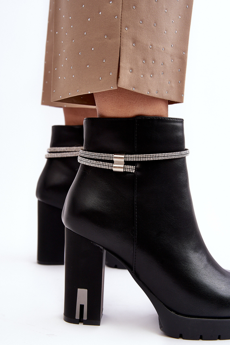 Damskie Botki Na Słupku Z Ozdobą Czarne Carolla