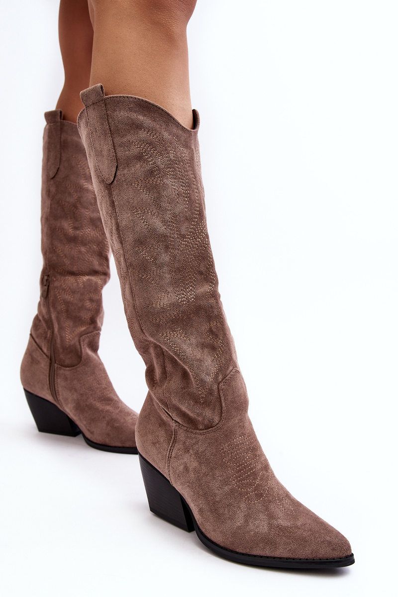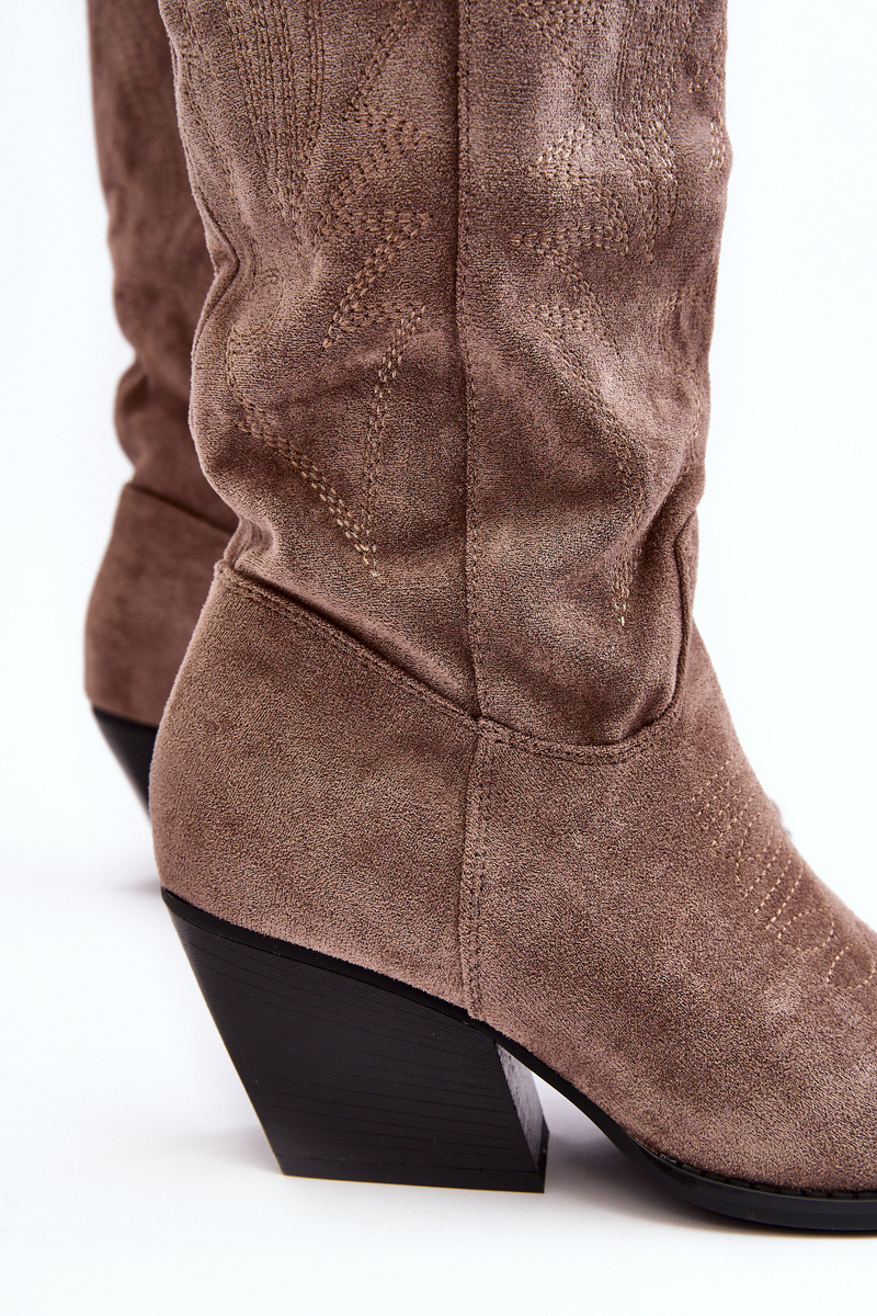 Damskie Kozaki Kowbojki Na Słupku Ciemnobeżowe Sloana