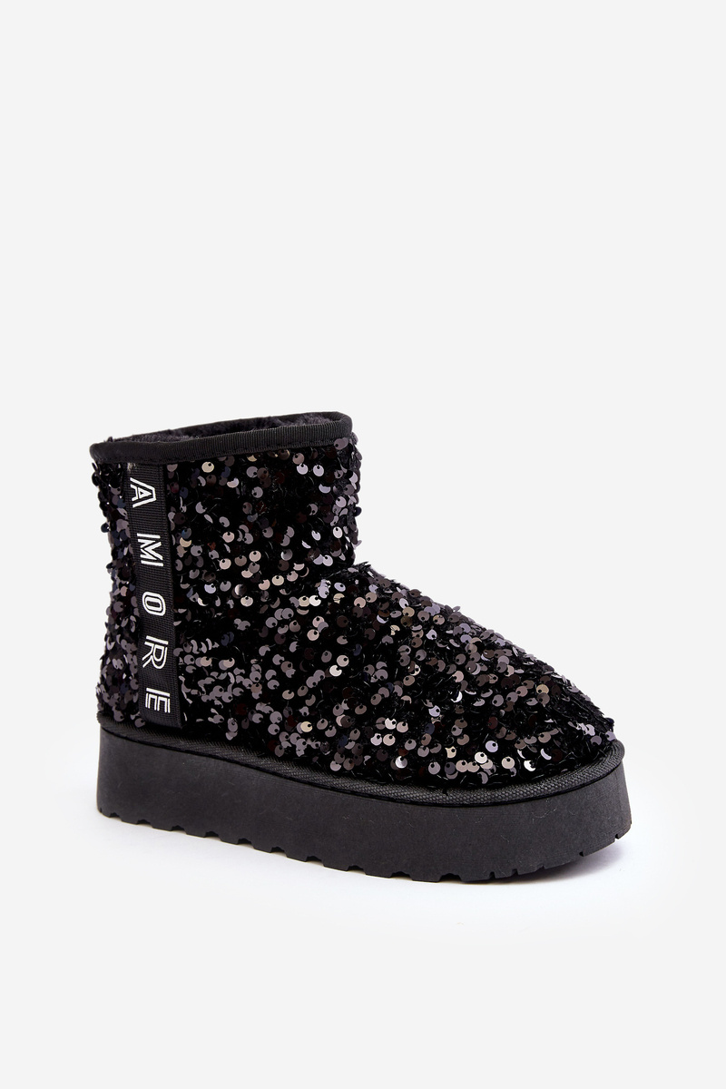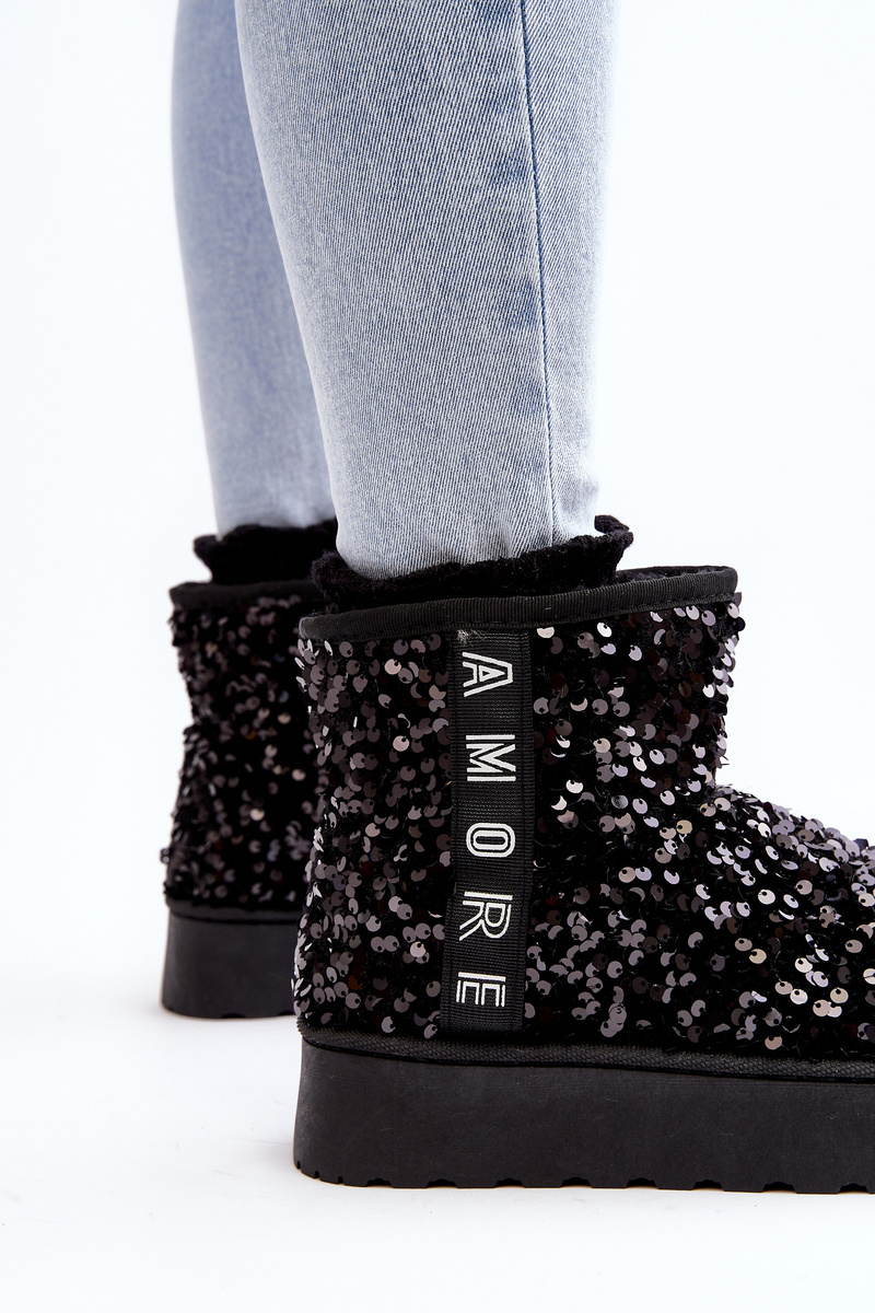 Śniegowce Damskie Na Platformie Zdobione Cekinami Czarne Silmo