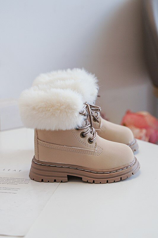 Dziecięce Trapery Botki Na Suwak z Futerkiem Beżowe Gerande