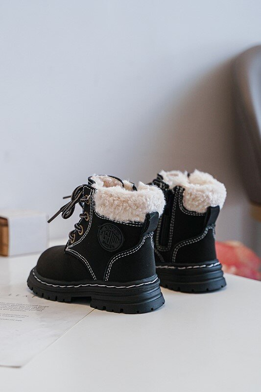 Dziecięce Trapery Botki Na Suwak z Kożuszkiem Czarne Marialee