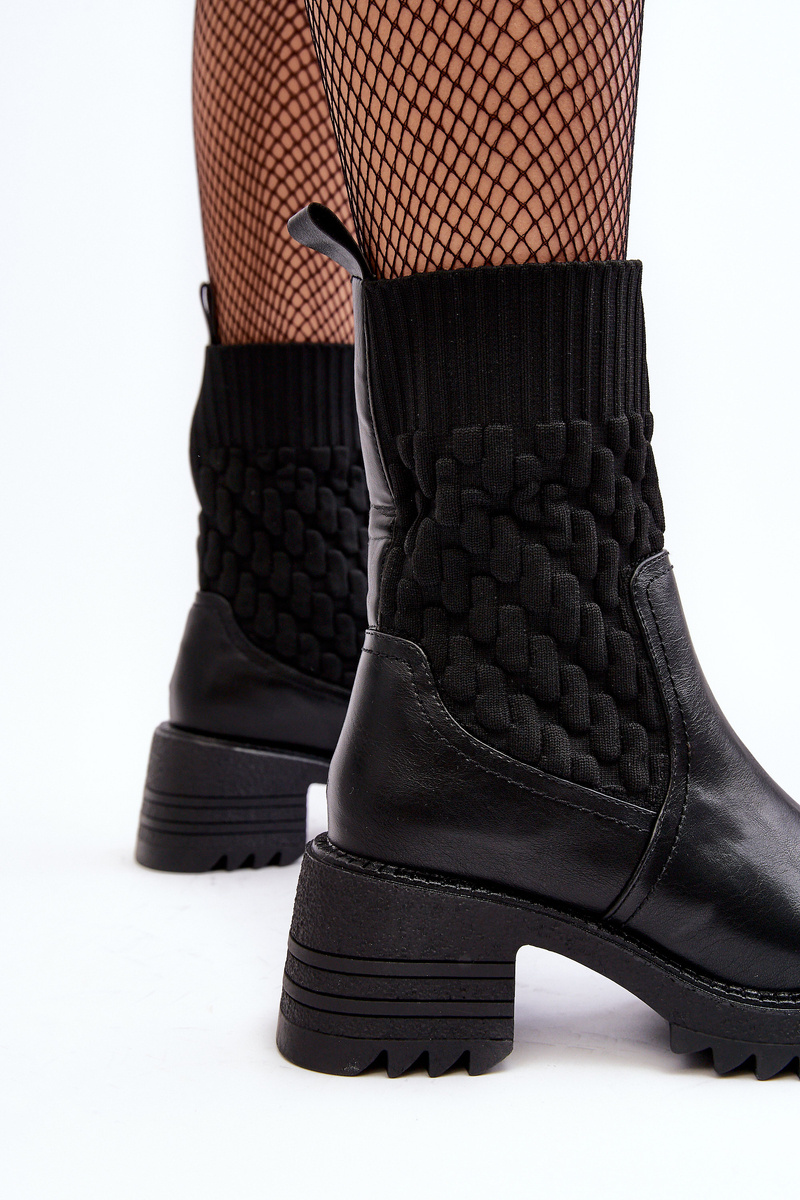 Botki Damskie Na Masywnym Obcasie Ze Skarpetą Czarne Briogen