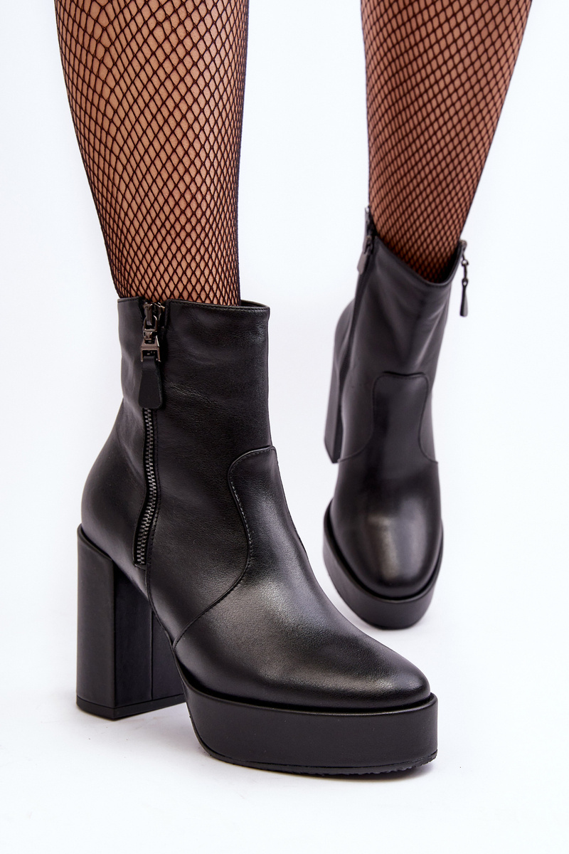 Botki Damskie Skórzane Na Słupku I Platformiei Laura Messi 2690 Czarne