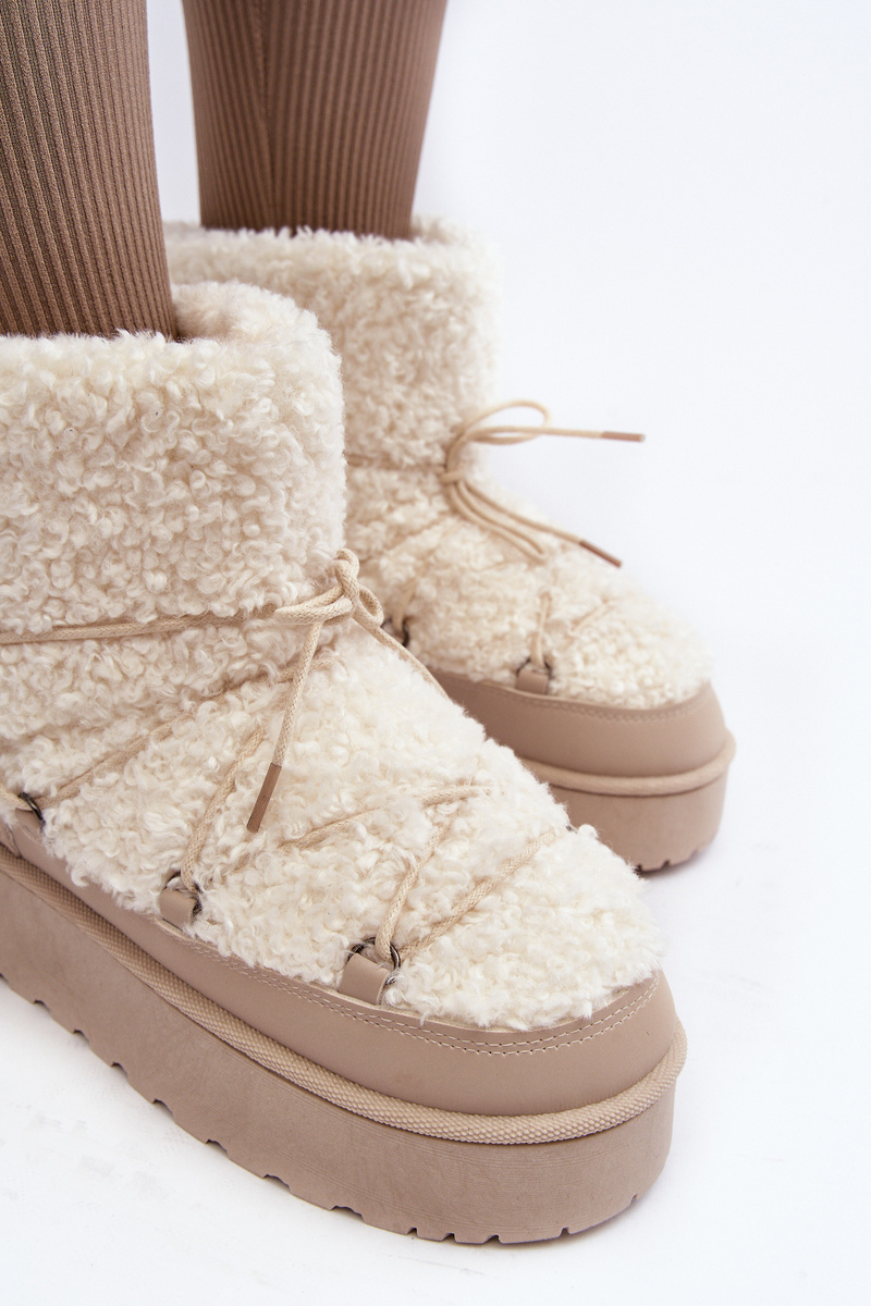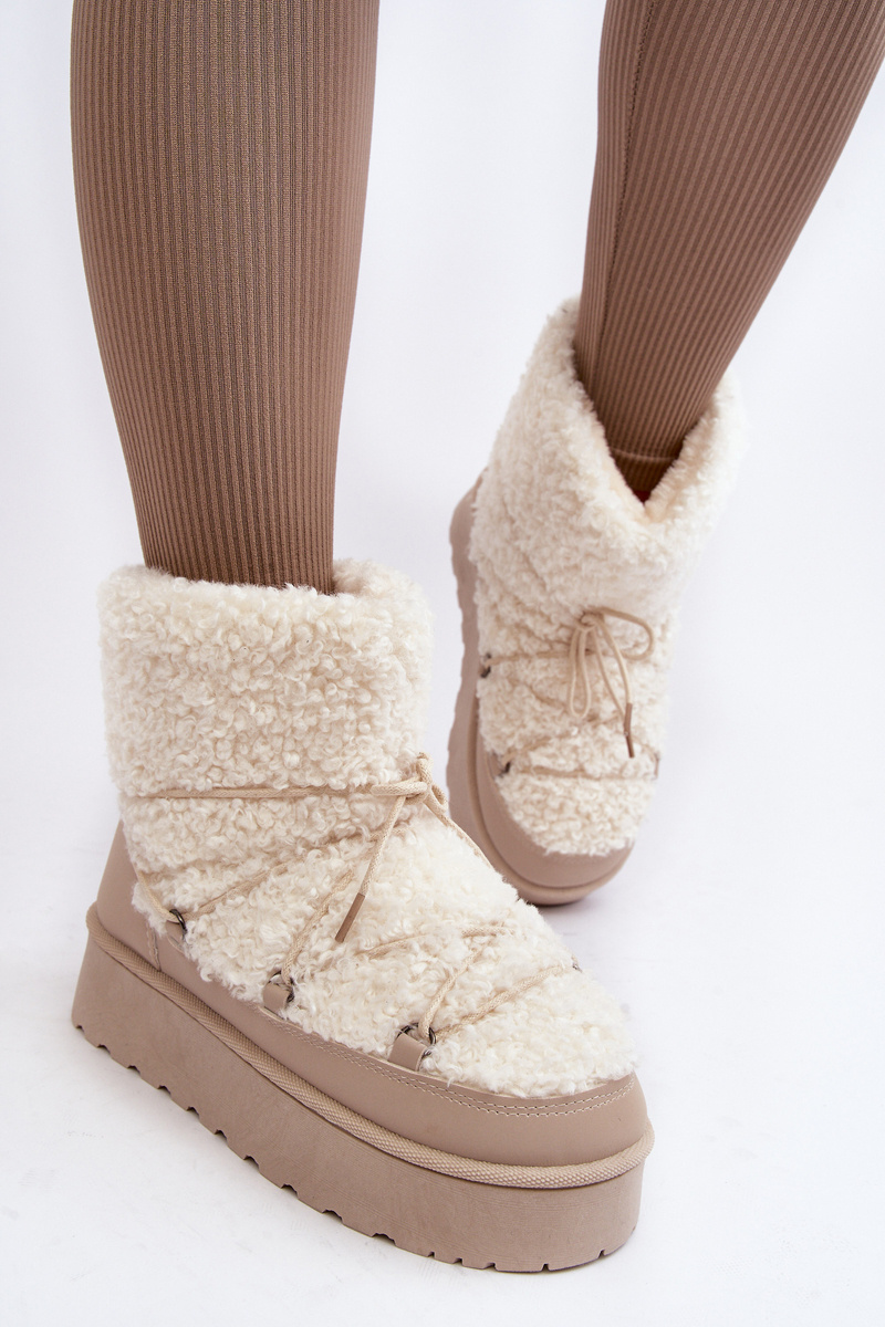 Wiązane Śniegowce Damskie Na Grubej Podeszwie Beżowe Loso