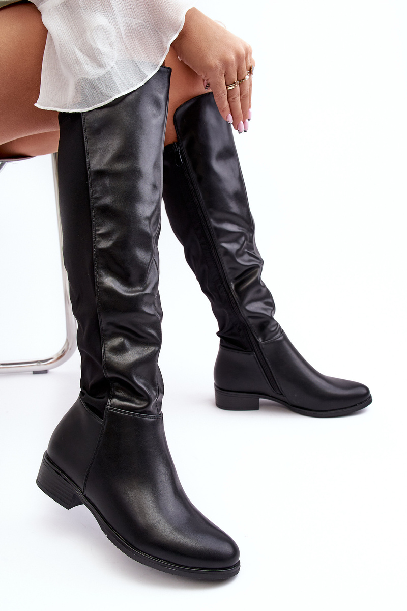 Damskie Skórzane Kozaki Przed Kolano S.Barski HY27098A Czarne