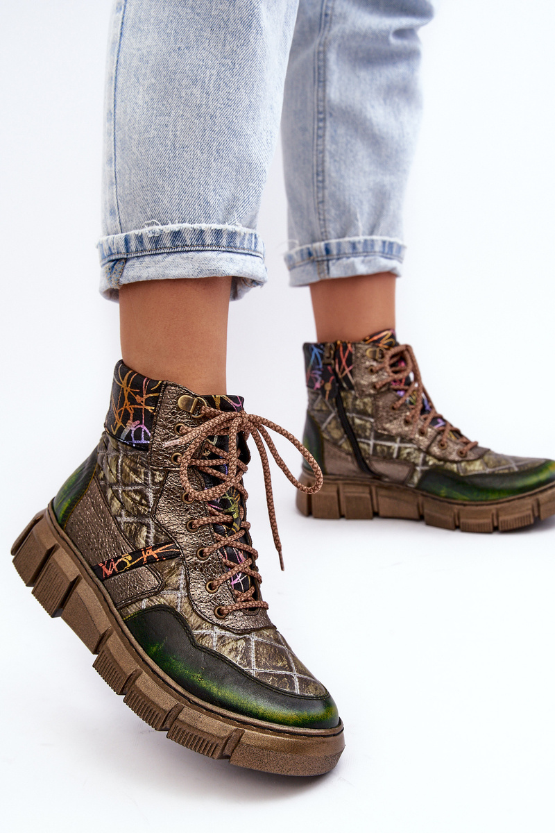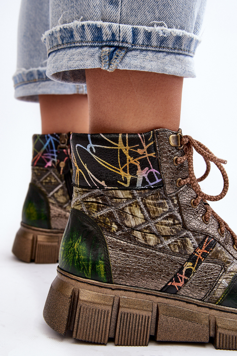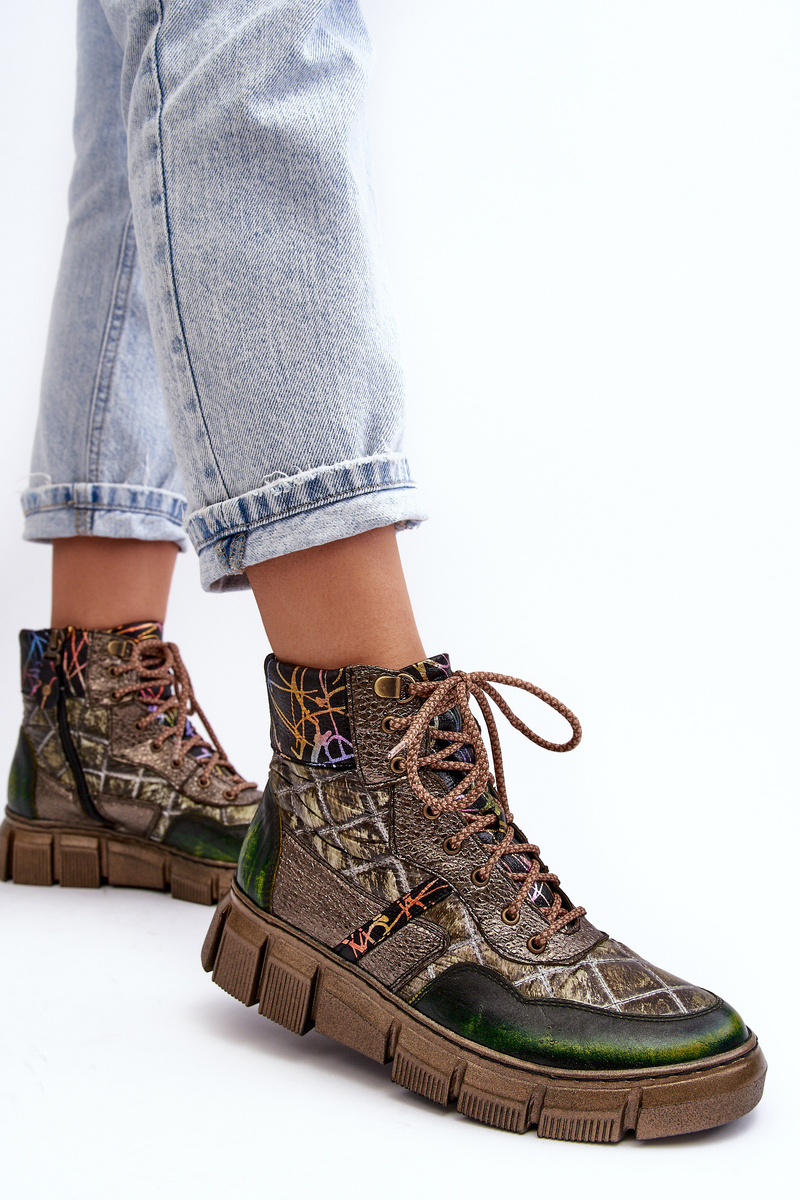 Wzorzyste Botki Damskie Skórzane Maciejka 06145-24 Oliwkowe