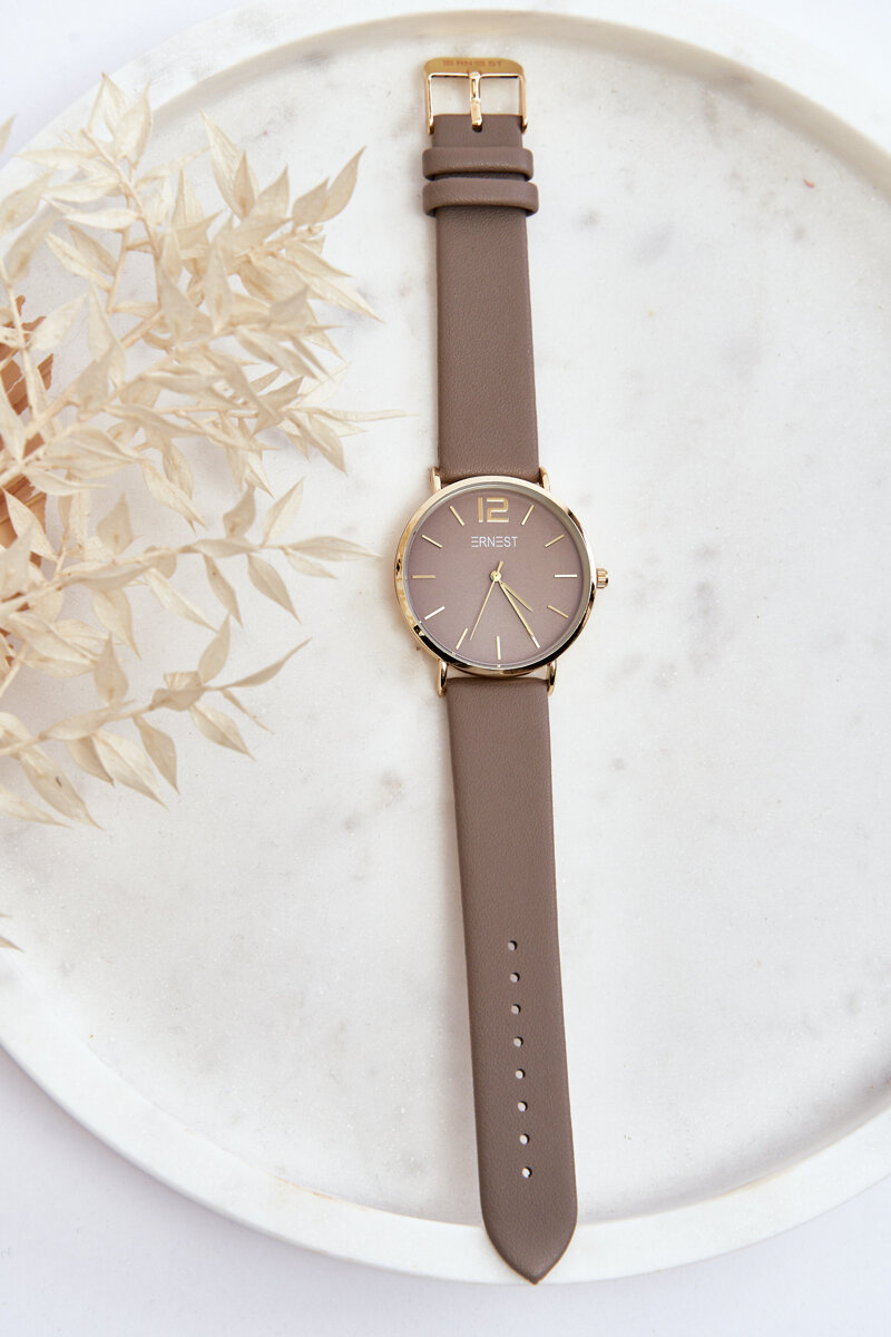 Damski Zegarek Na Skórzanym Pasku Ernest E62001MD Szary