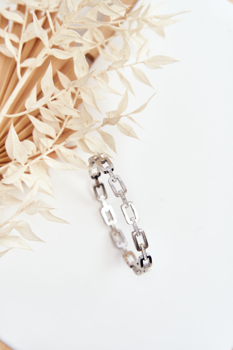 Bransoletka damska została wykonana ze stali chirurgicznej. Ozdobiona małymi cyrkoniami. Klasyczny model, który dopasujesz do wielu stylizacji!