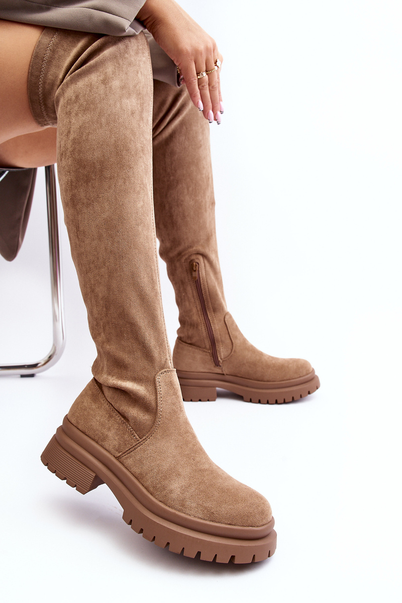 Damskie Kozaki Za Kolano Na Płaskim Obcasie Beżowe Silune