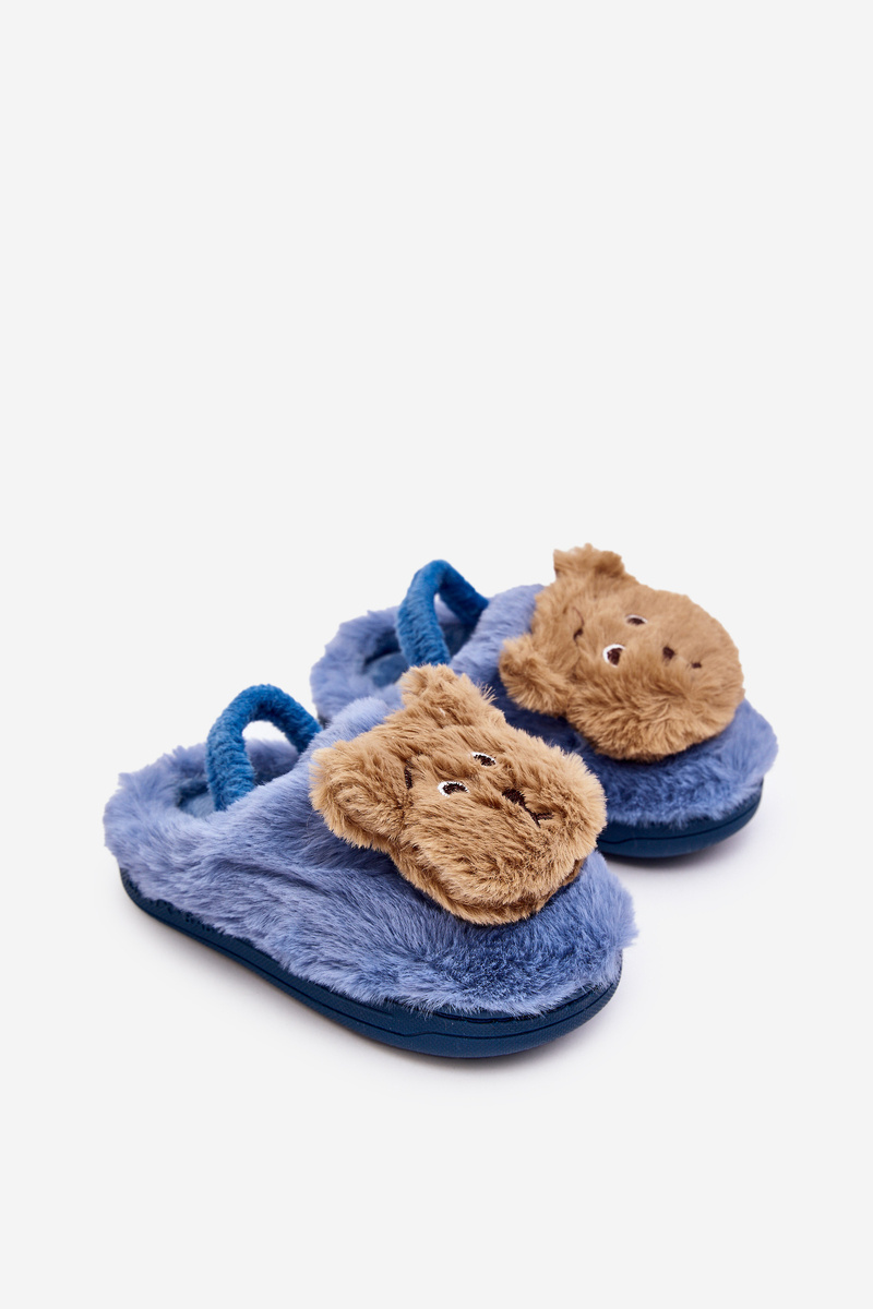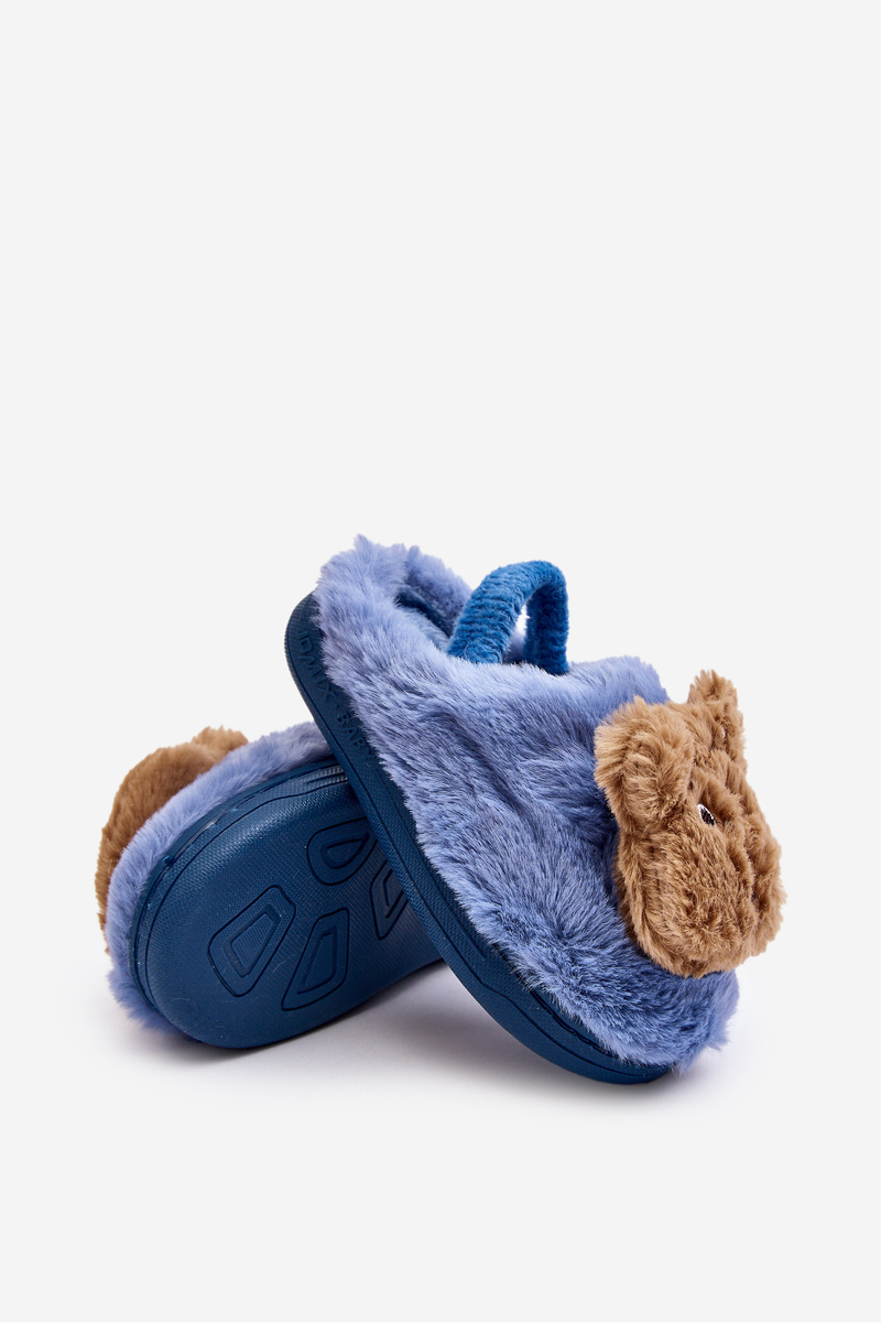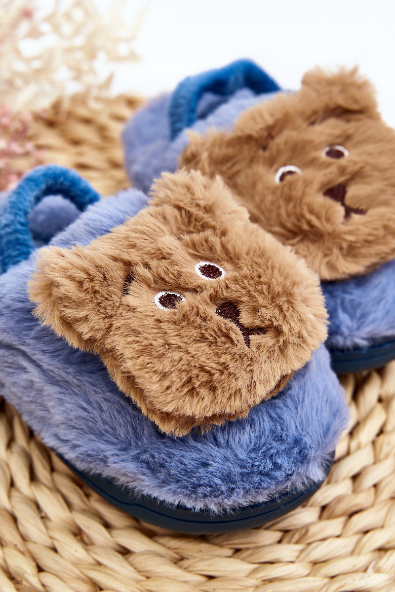 Kapcie Dziecięce Futrzane Z Misiem Niebieskie Dicera