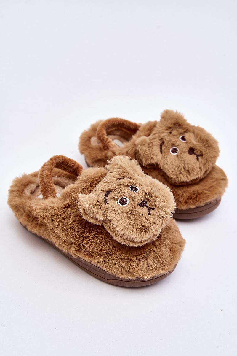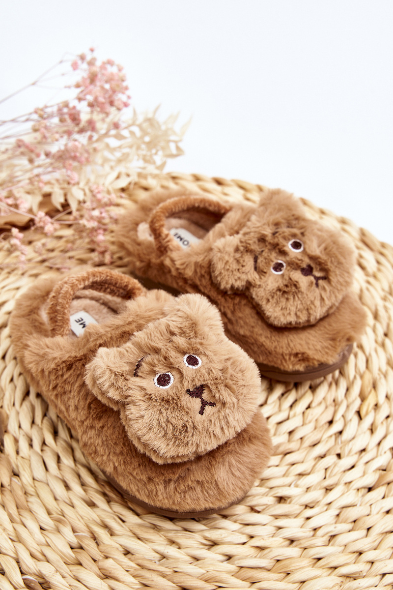 Kapcie Dziecięce Futrzane Z Misiem Brązowe Dicera
