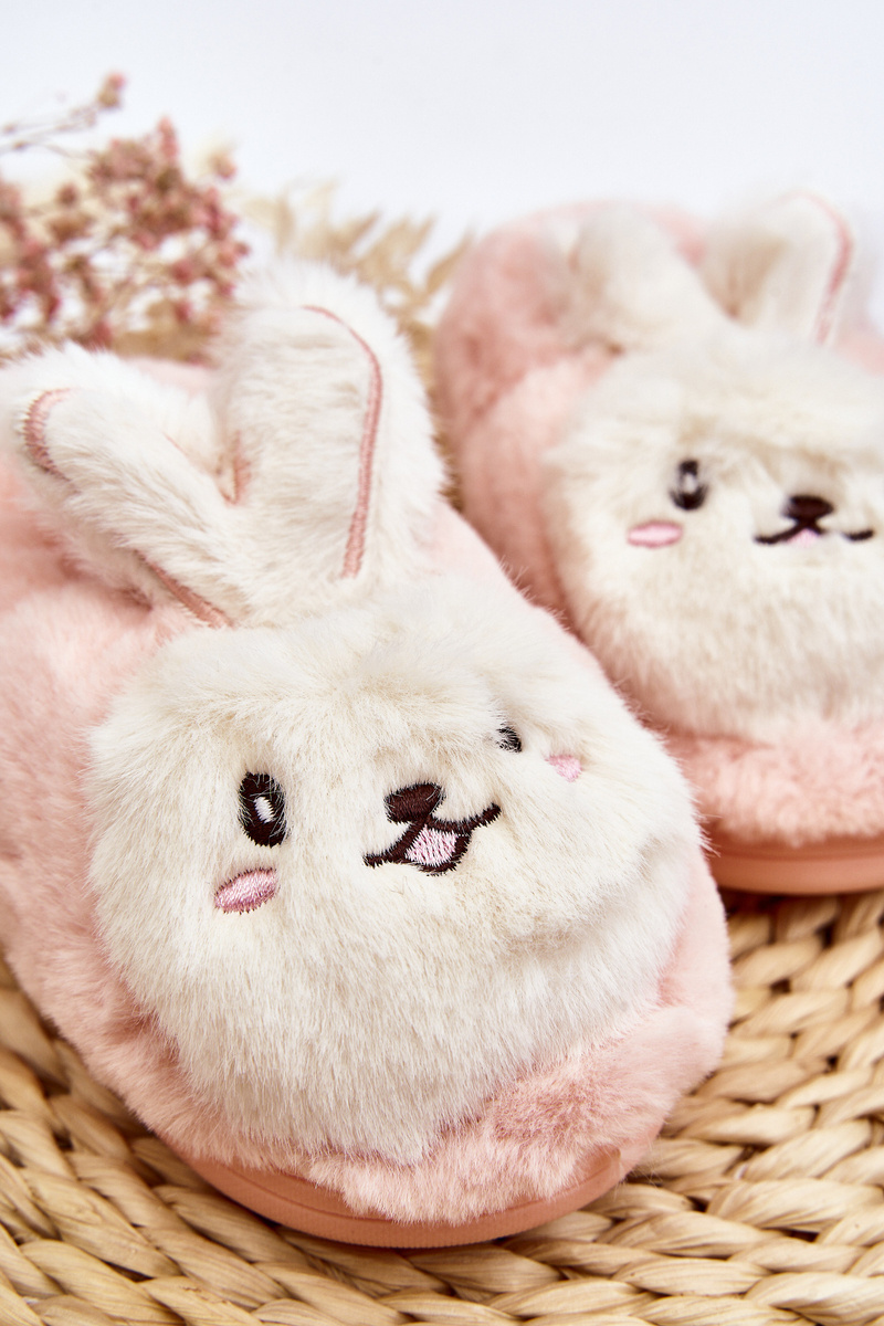 Futrzane Kapcie Dziecięce Z Króliczkiem Jasnoróżowe Apolanie