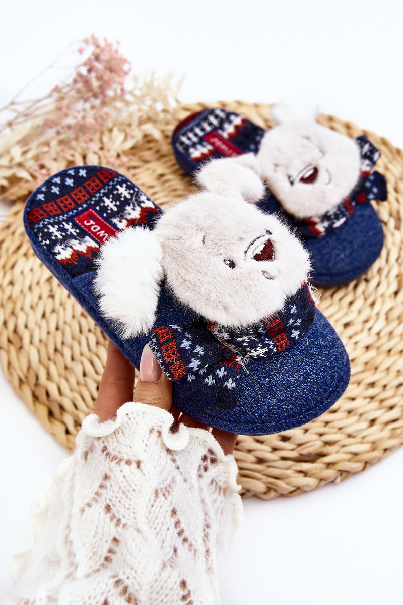 Dziecięce Kapcie Na Grubej Podeszwie z Misiem Granatowe Dasca